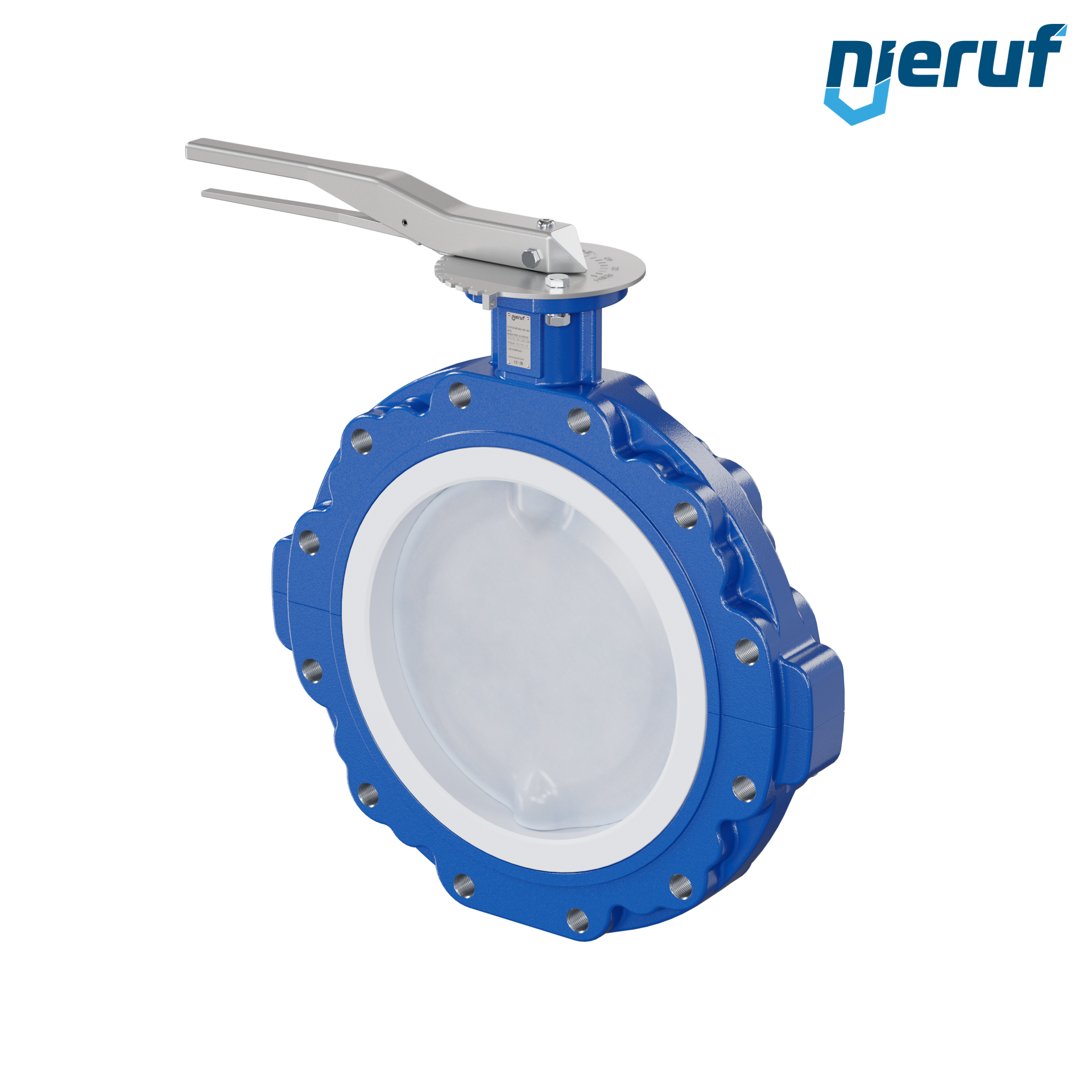 vanne papillon DN300 ANSI150 avec oreilles taraudées / lug papillon acier inoxydable 1.4404 avec levier à cran joint en PTFE et insertion EPDM pour fluides aggressifs