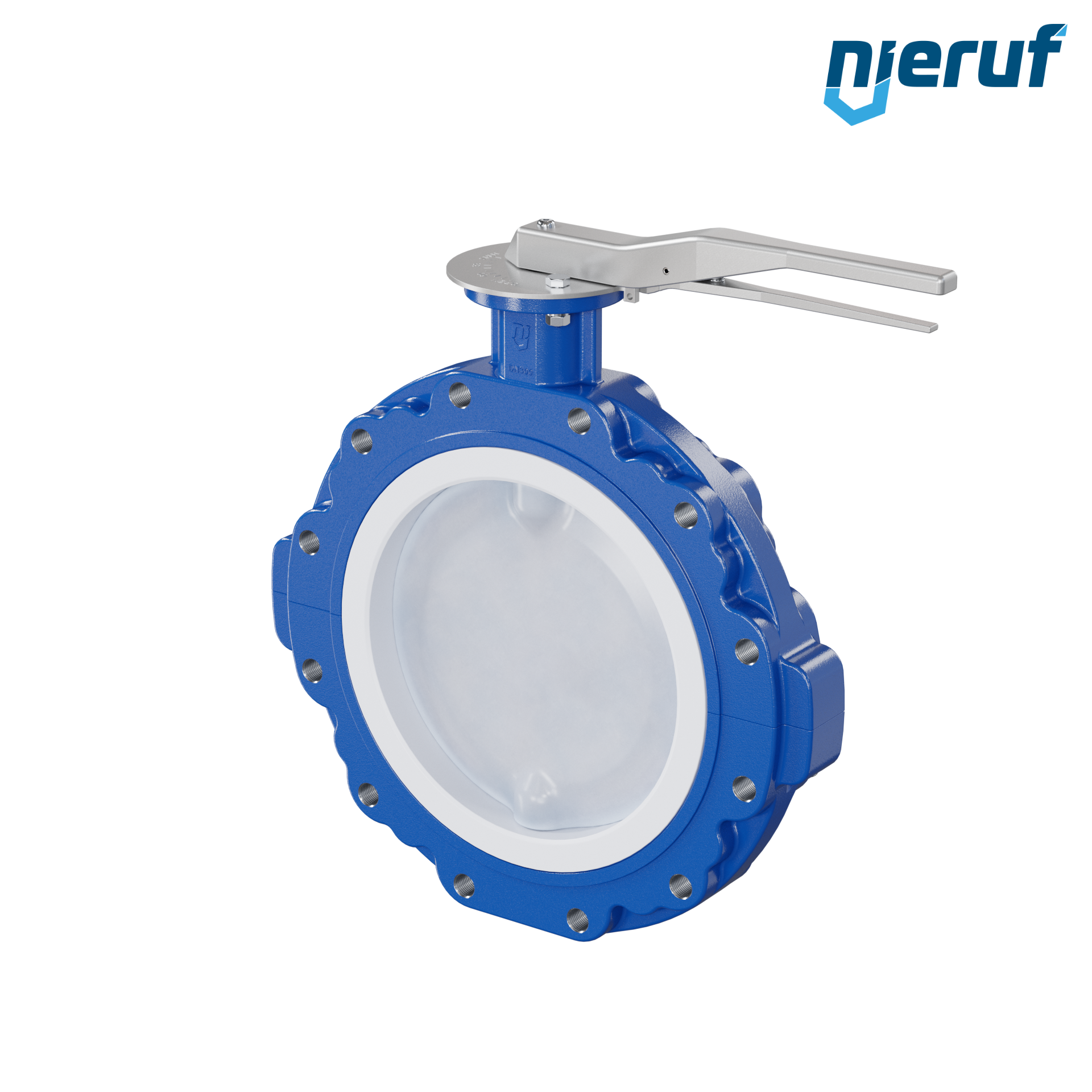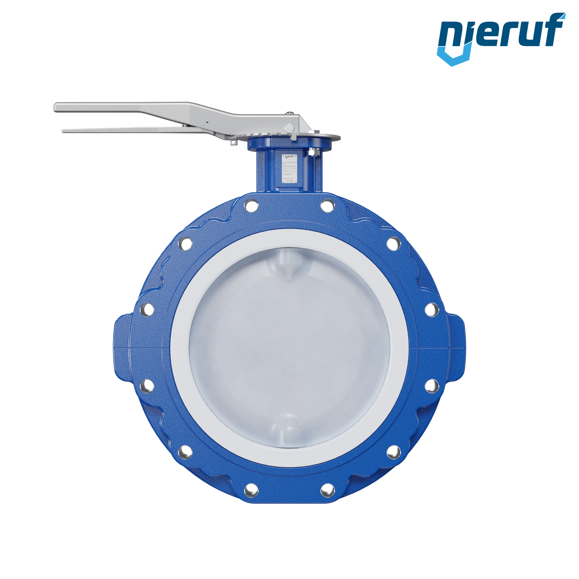 Vanne papillon avec manchette en PTFE et papillon en acier inoxydable pour les fluides agressifs.