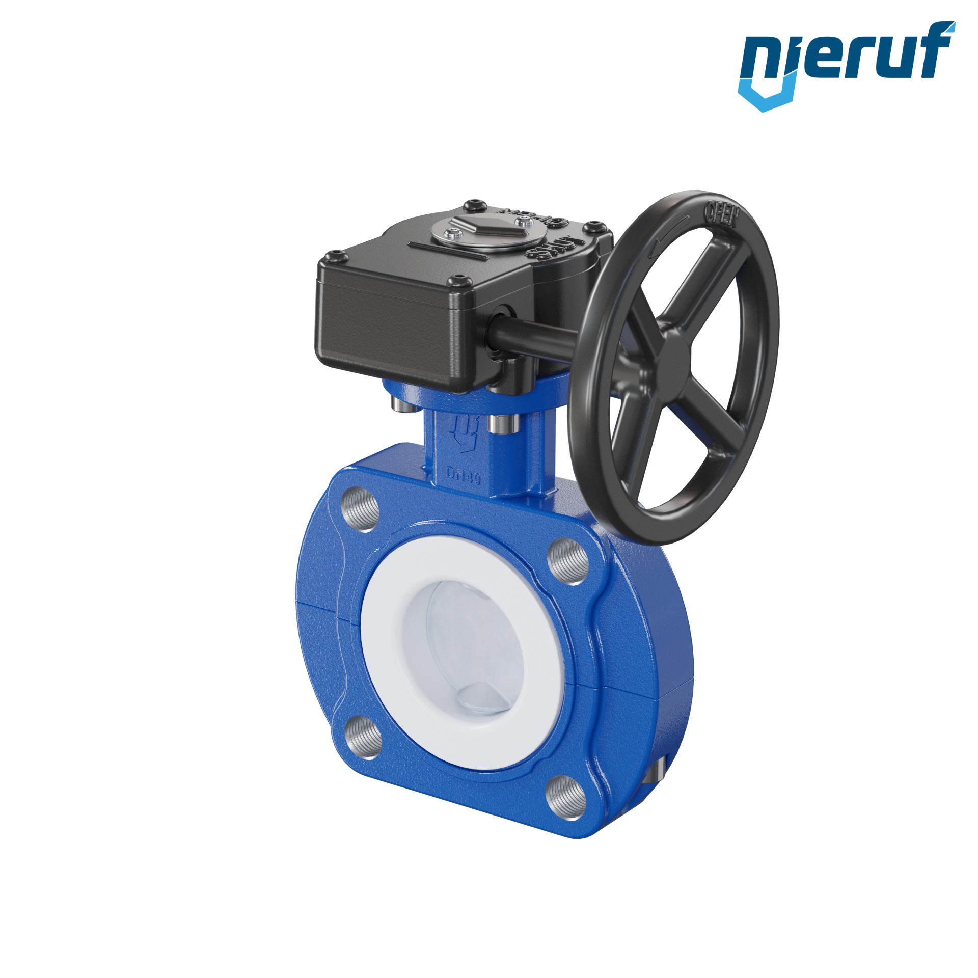 vanne papillon PTFE AK10 DN40 PN10-PN16 réducteur à volant insertion FKM