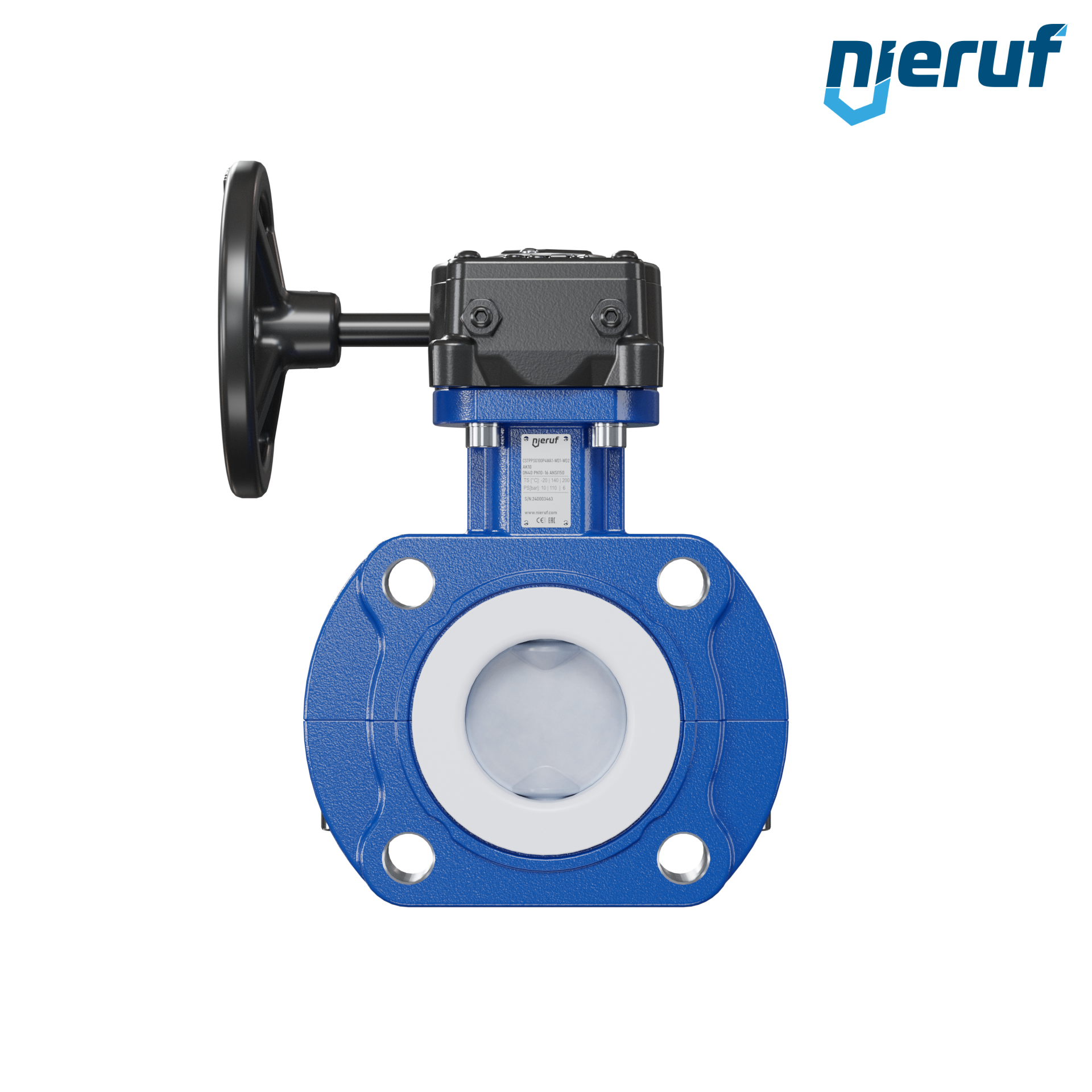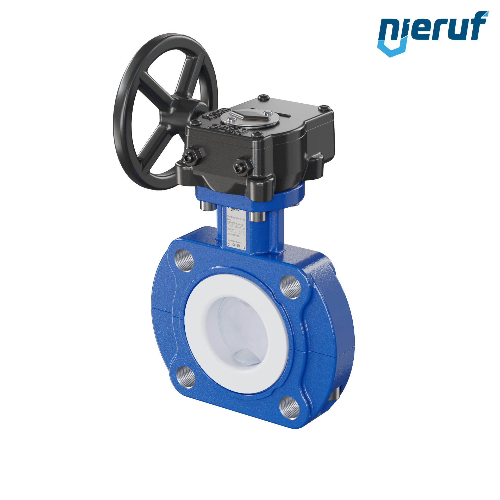vanne papillon DN40 PN10-PN16 avec oreilles taraudées / lug papillon acier inoxydable 1.4469 avec réducteur à volant joint en PTFE et insertion FKM pour fluides aggressifs