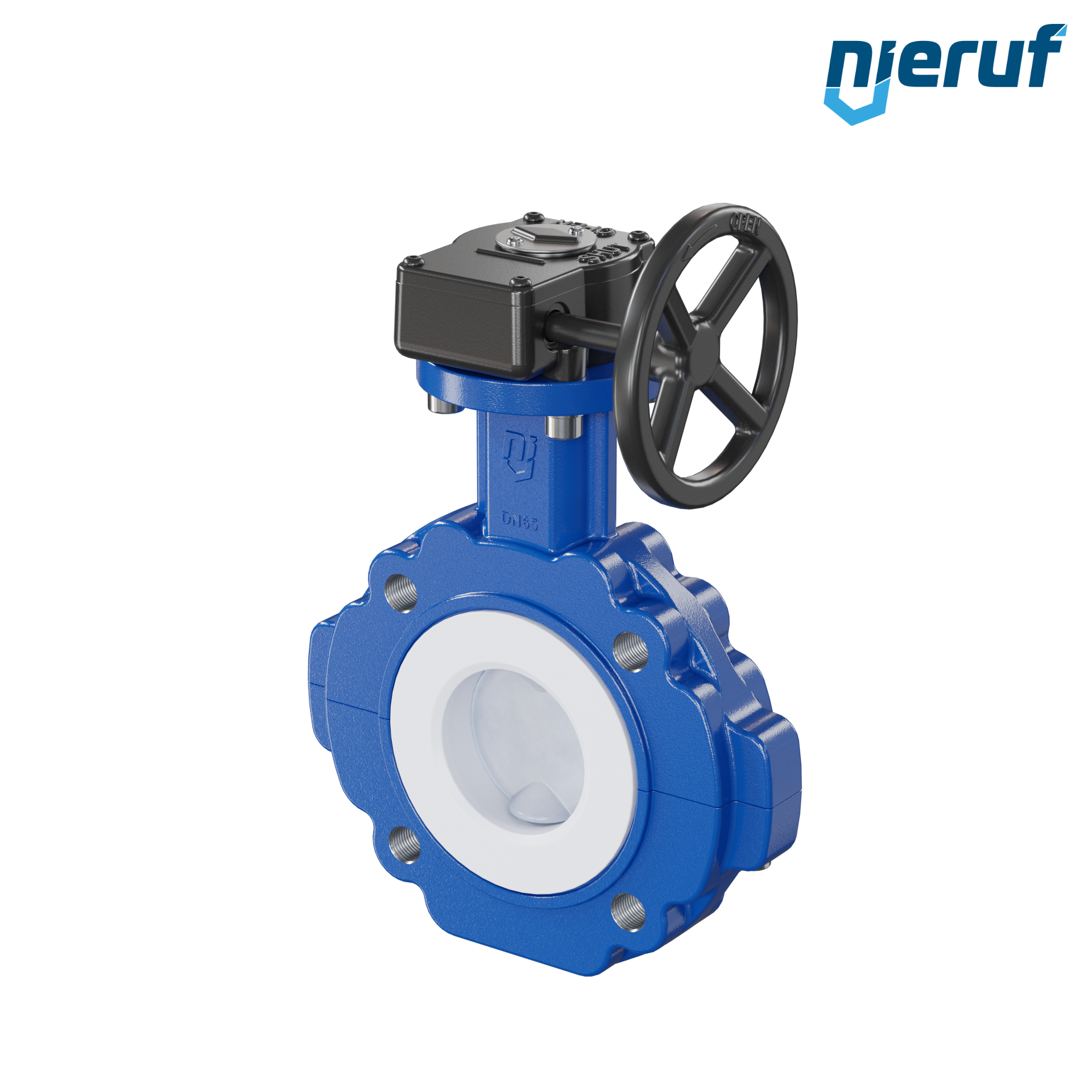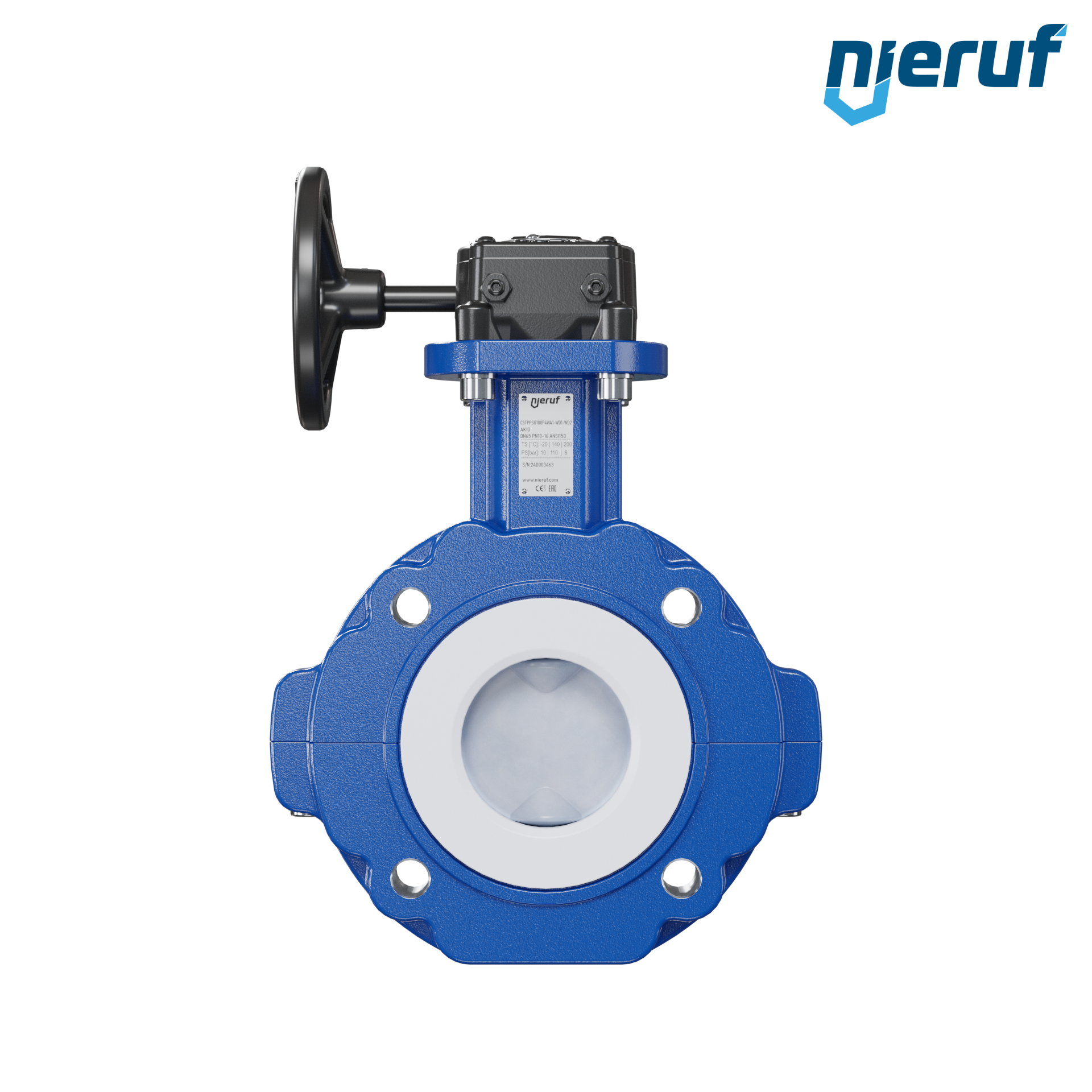 vanne papillon PTFE AK10 DN65 ANSI150 réducteur à volant insertion FKM