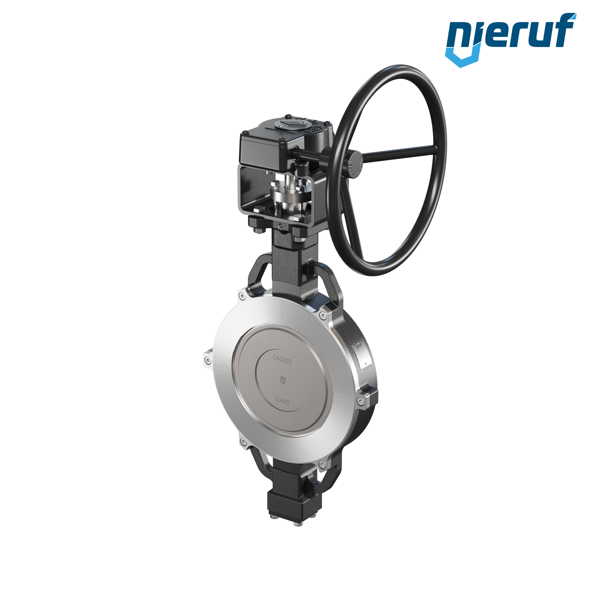 Vanne papillon à triple excentration avec oreilles centrées AK13 DN 200 PN10-PN16-PN25-PN40 & ANSI150-ANSI300 avec corps en acier moulé max. 40 bar engrenage