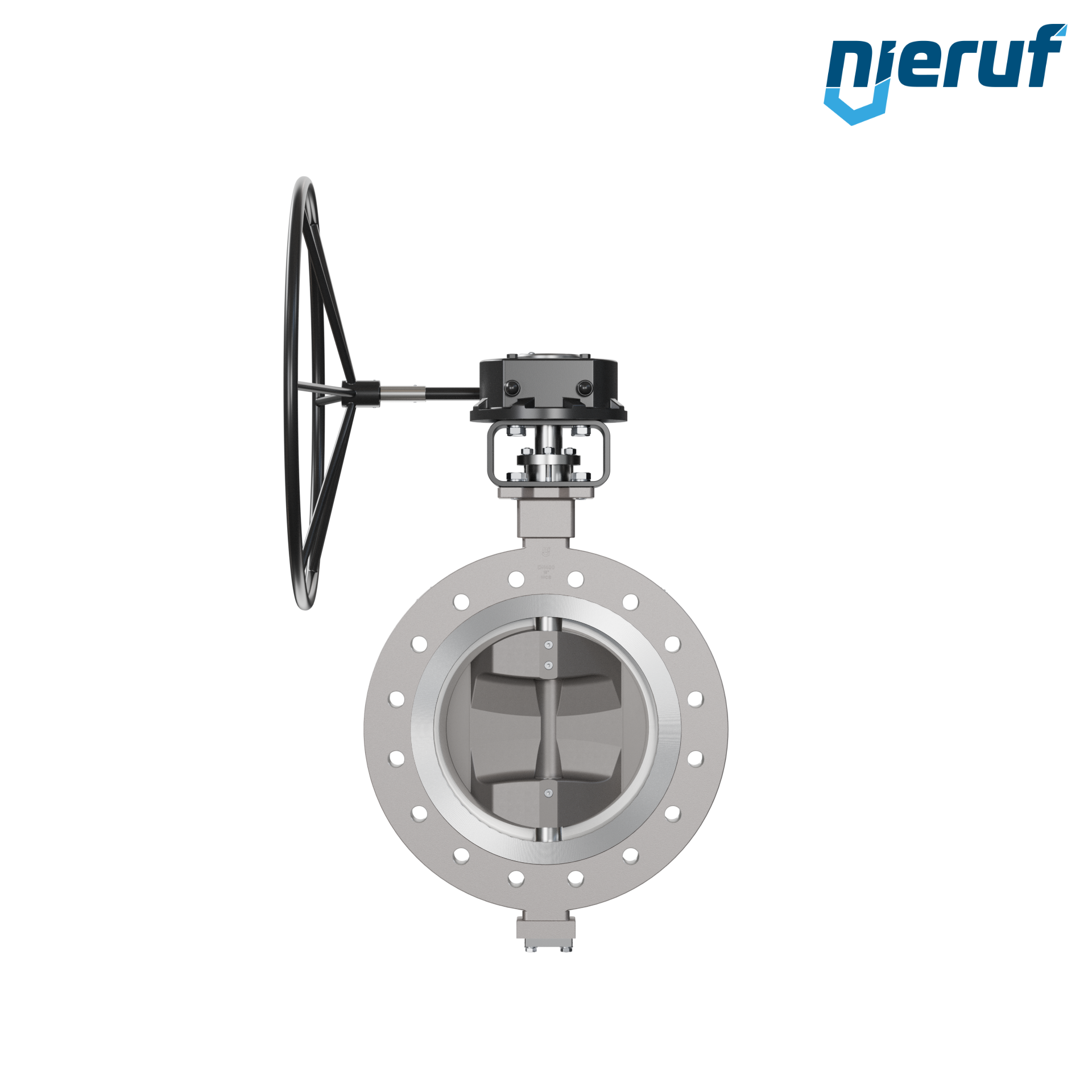 Vanne papillon triple excentration avec oreilles taraudées AK14 DN 400 PN25 avec corps en acier inoxydable max. 25 bar engrenage