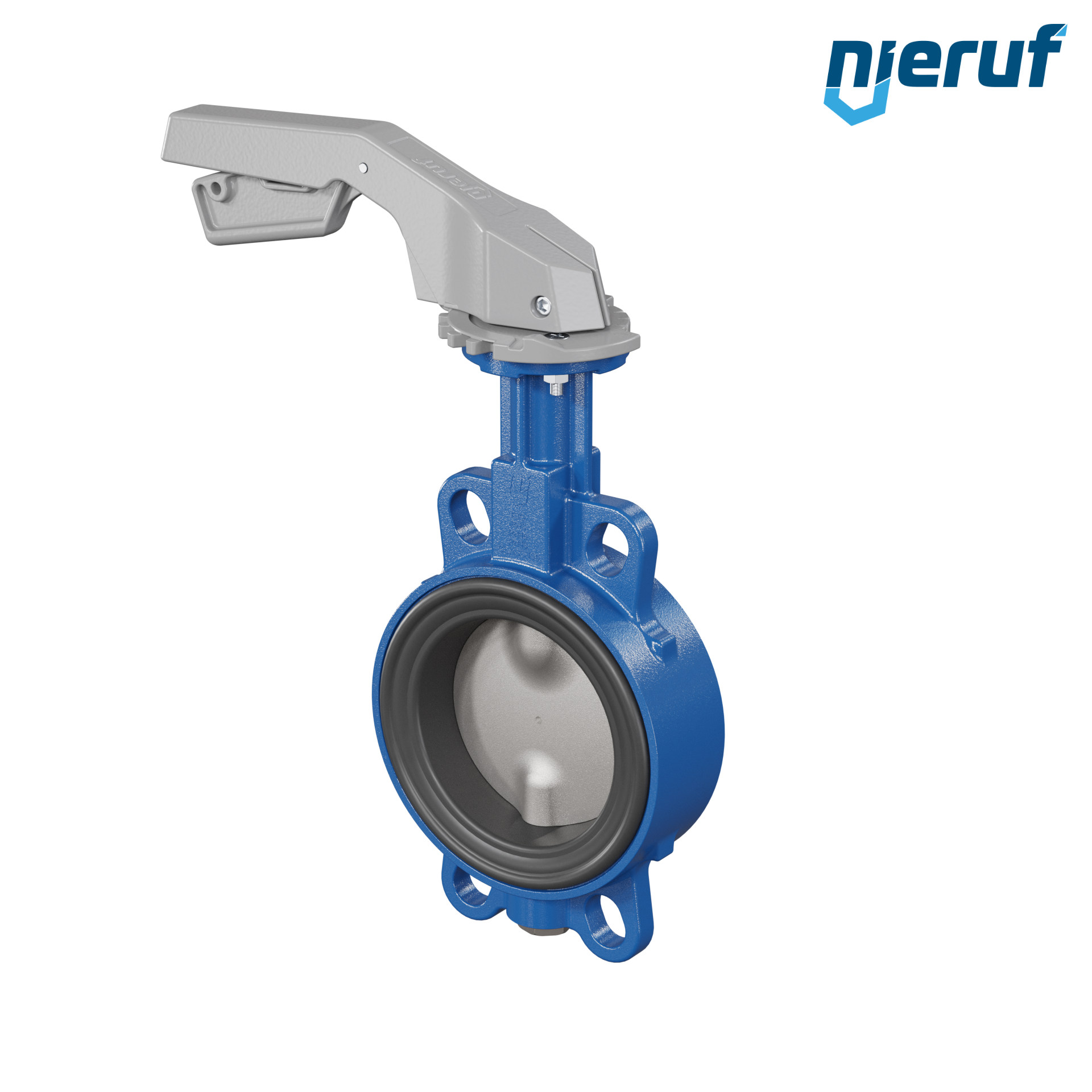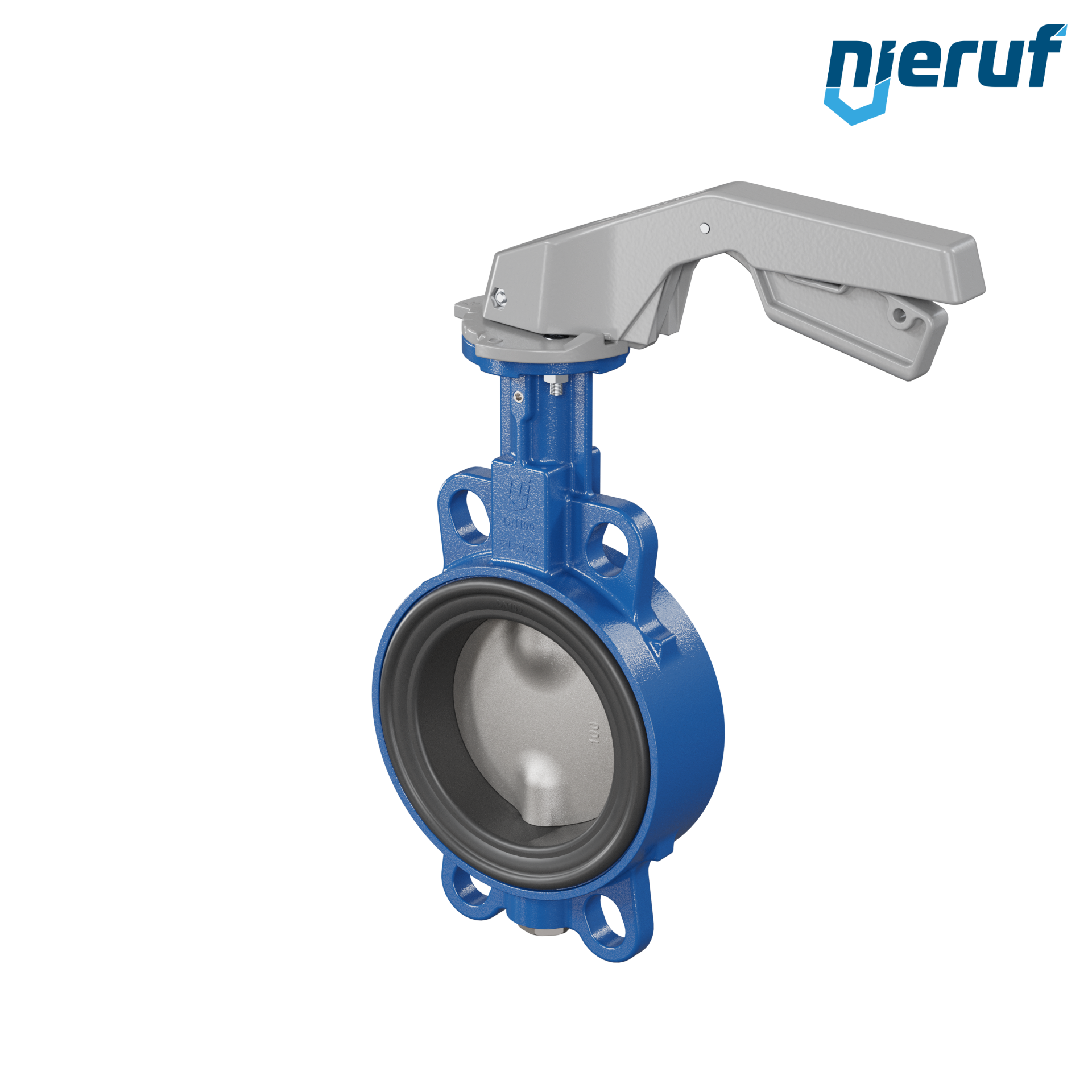 vanne papillon DN 100 PN6-PN10-PN16 & ANSI150 avec oreilles centrées / wafer fonte à graphite sphéroïdal avec levier manuel grise EPDM DVGW eau potable, WRAS, ACS, W270