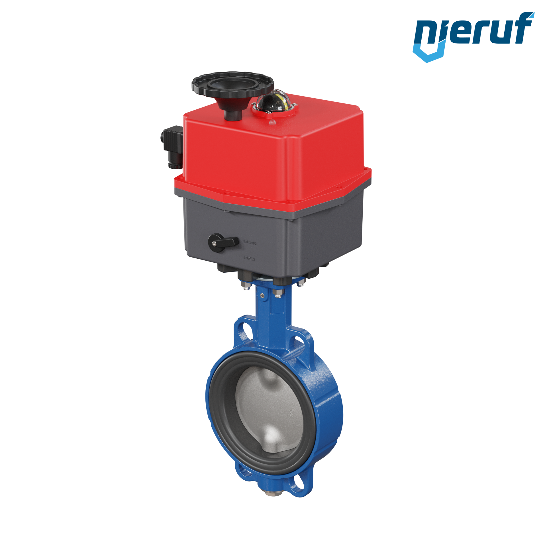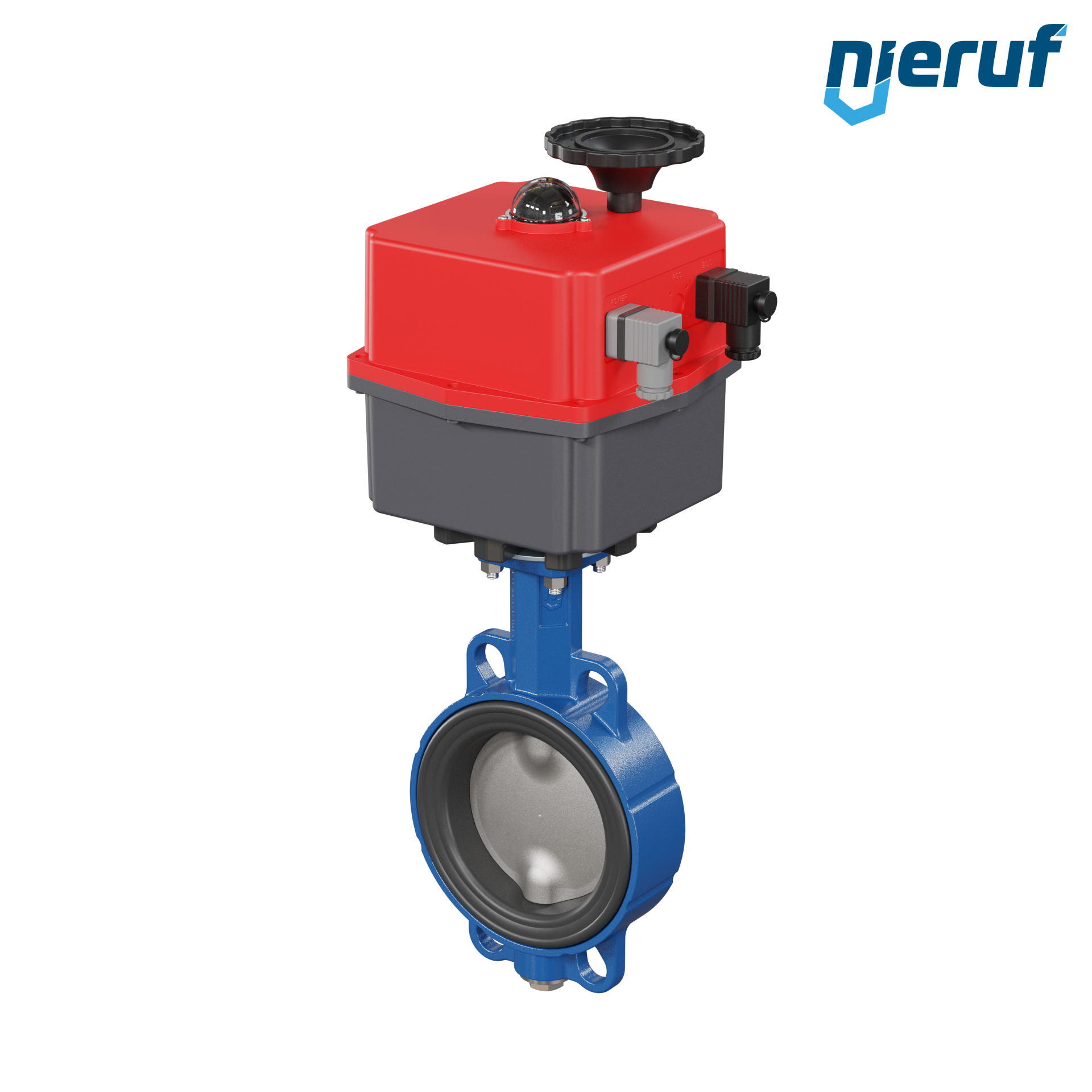 Vanne papillon sans entretien avec revêtement époxy de haute qualité et arbre divisé. Système d'étanchéité à trois niveaux pour une étanchéité garantie, une durée de vie à long terme et un fonctionnement sûr. L'actionneur peut être complété en option par un système de positionnement numérique 0-10V ou 4-20mA ou par un pack d'accus NF ou NO.