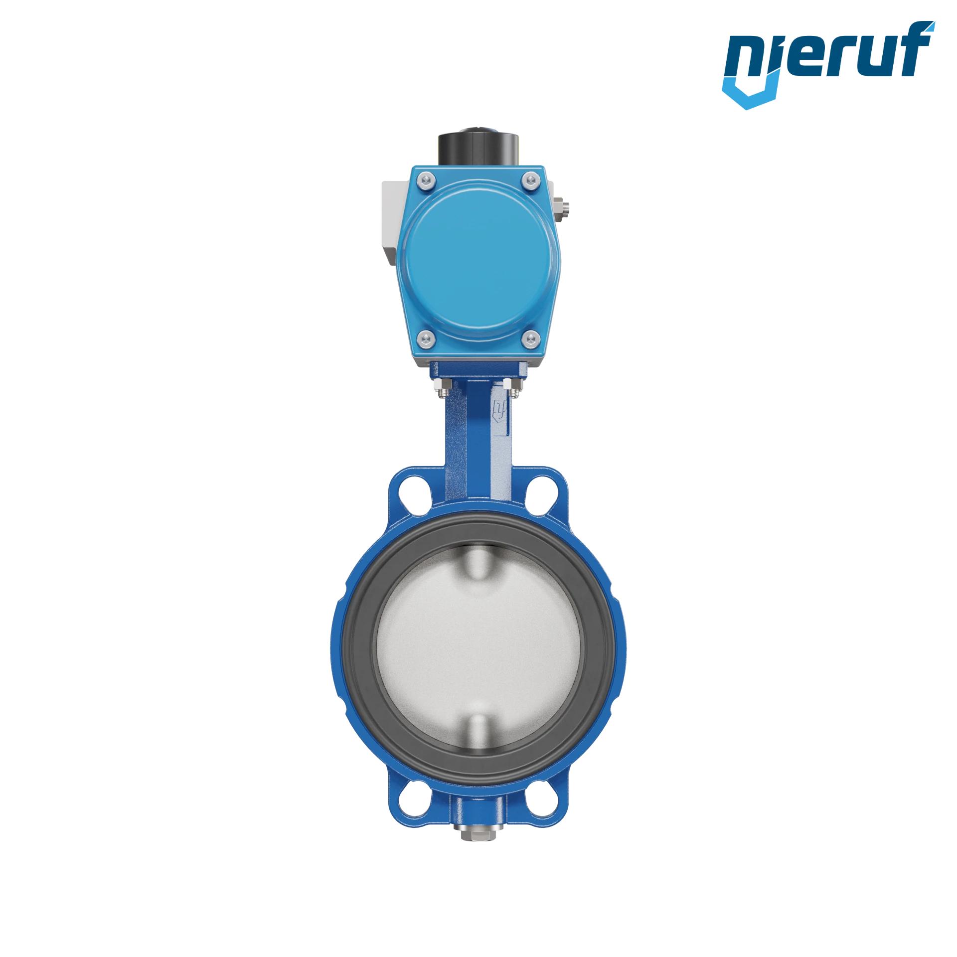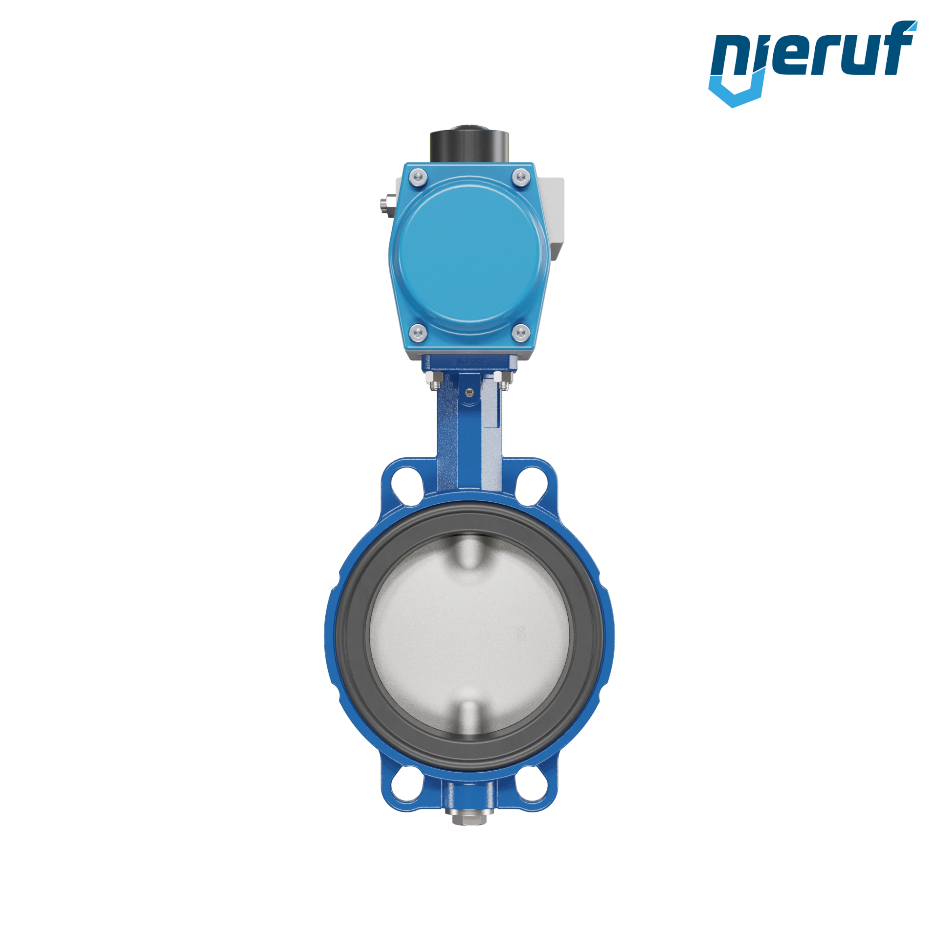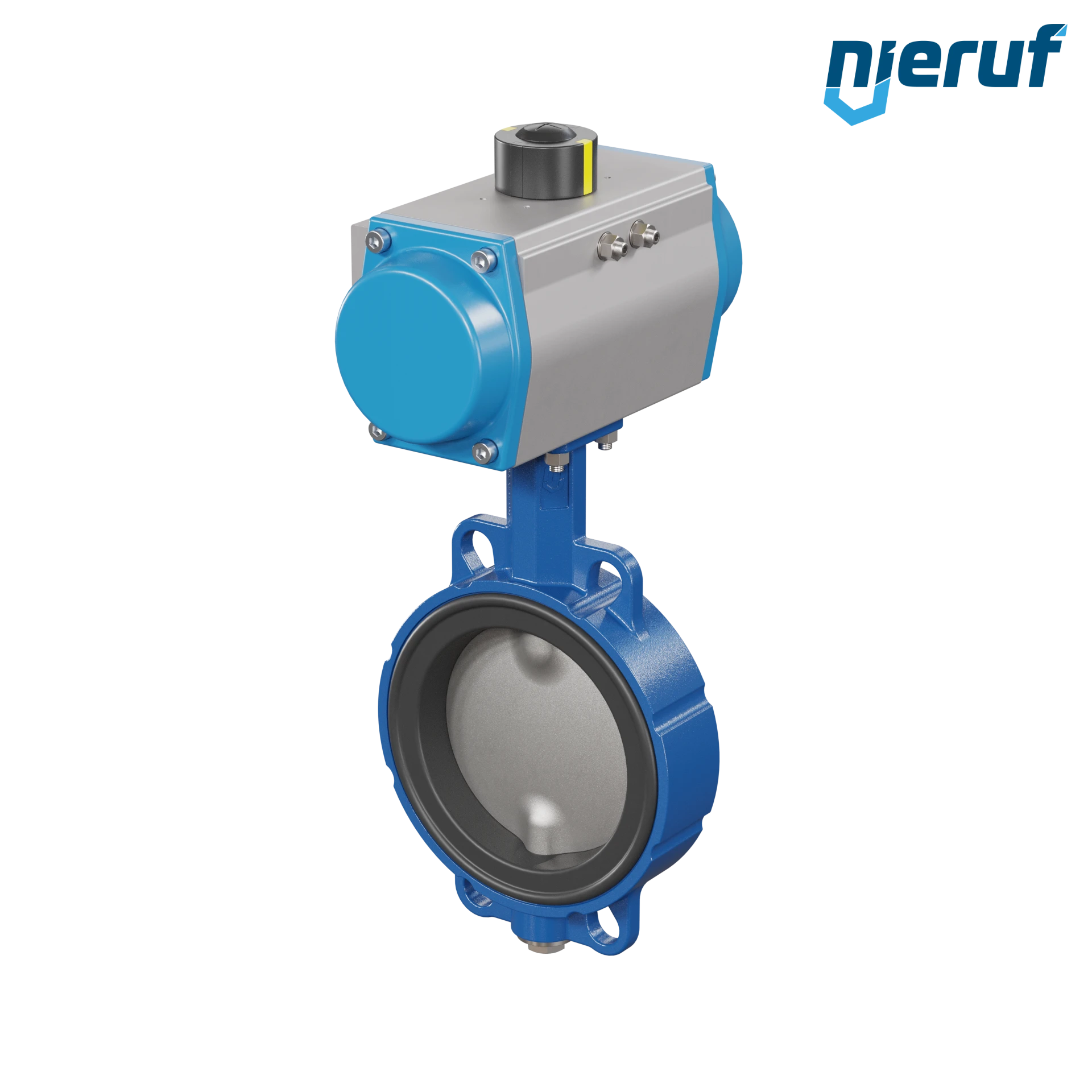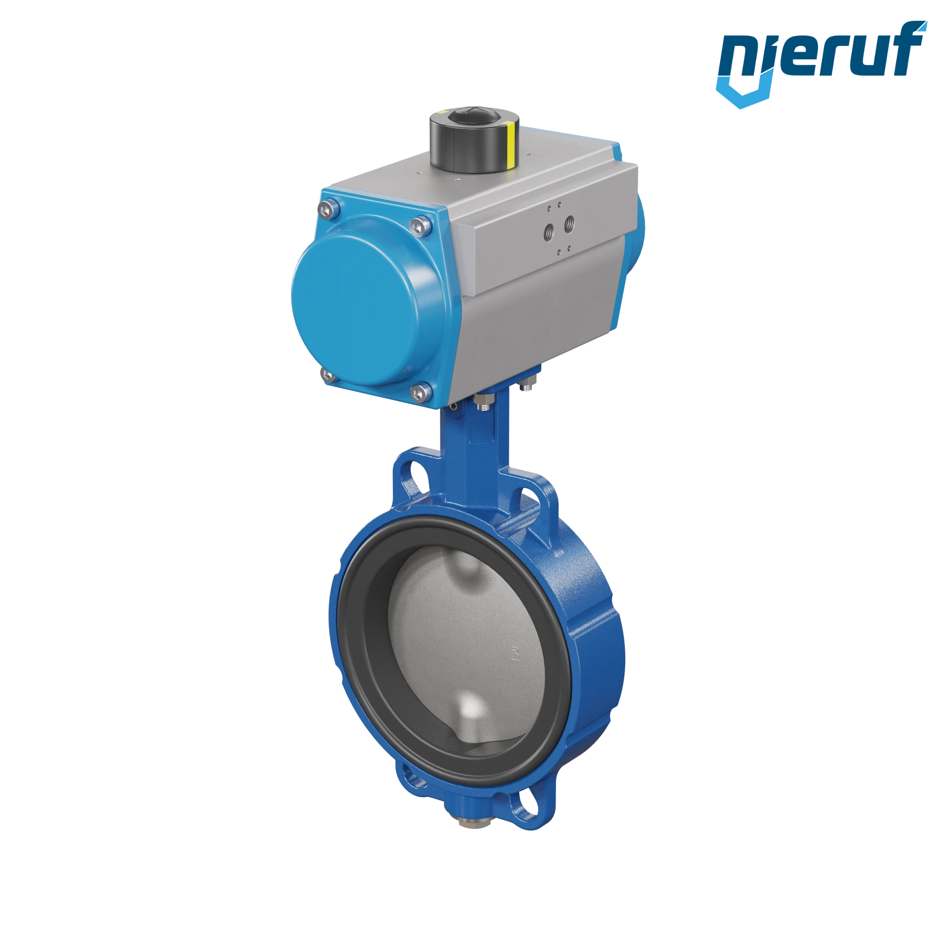 vanne papillon DN 150 avec oreilles centrées / wafer corps en fonte à graphite sphéroïdal avec actionneur pneumatique à double effet manchette en NBR-70-noir DVGW gaz