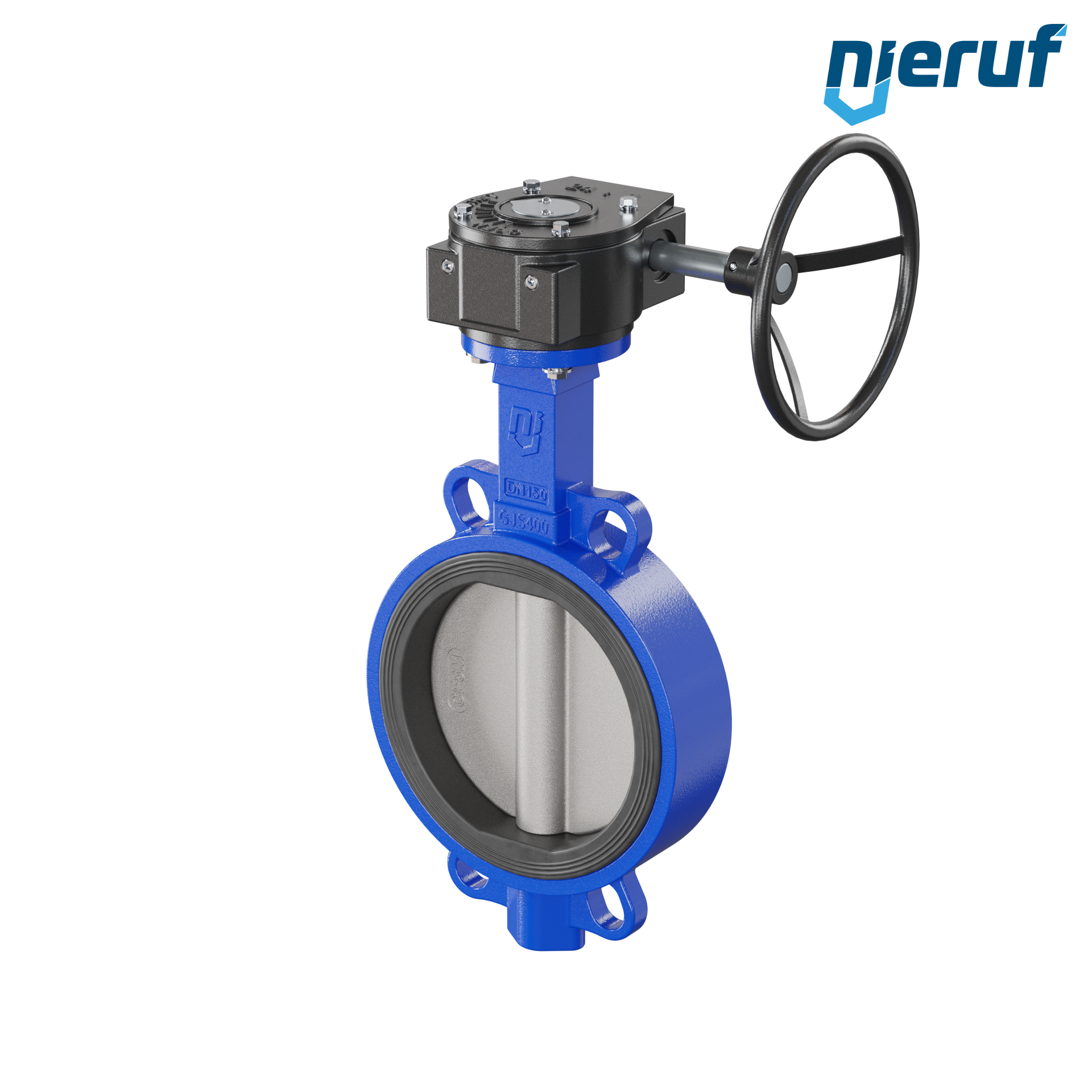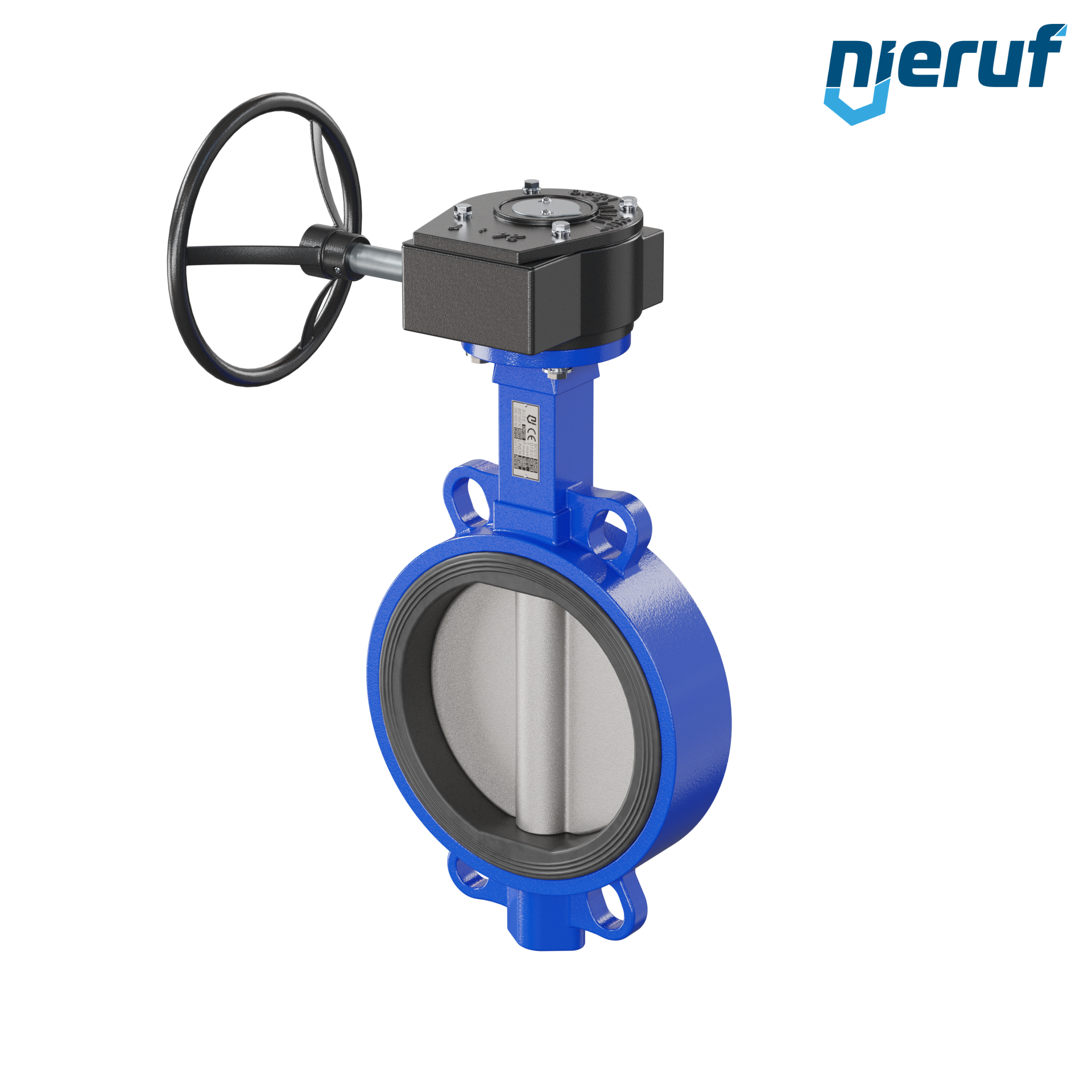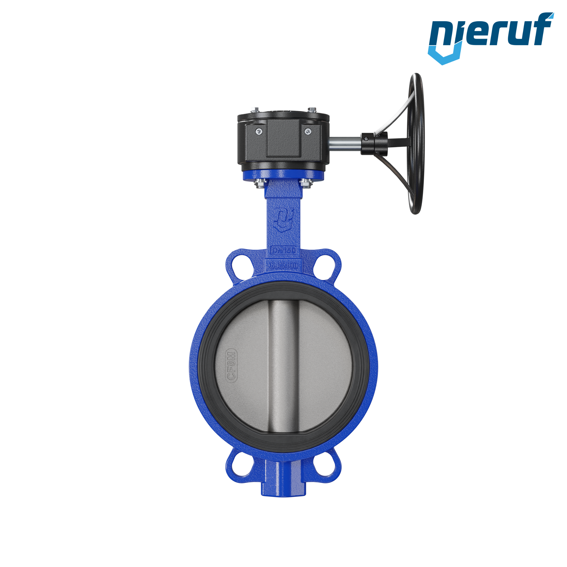 vanne papillon DN 150 PN16 type wafer corps en fonte EN GJL-250 (GG25) papillon en acier inoxydable 1.4408 avec engrenage EPDM