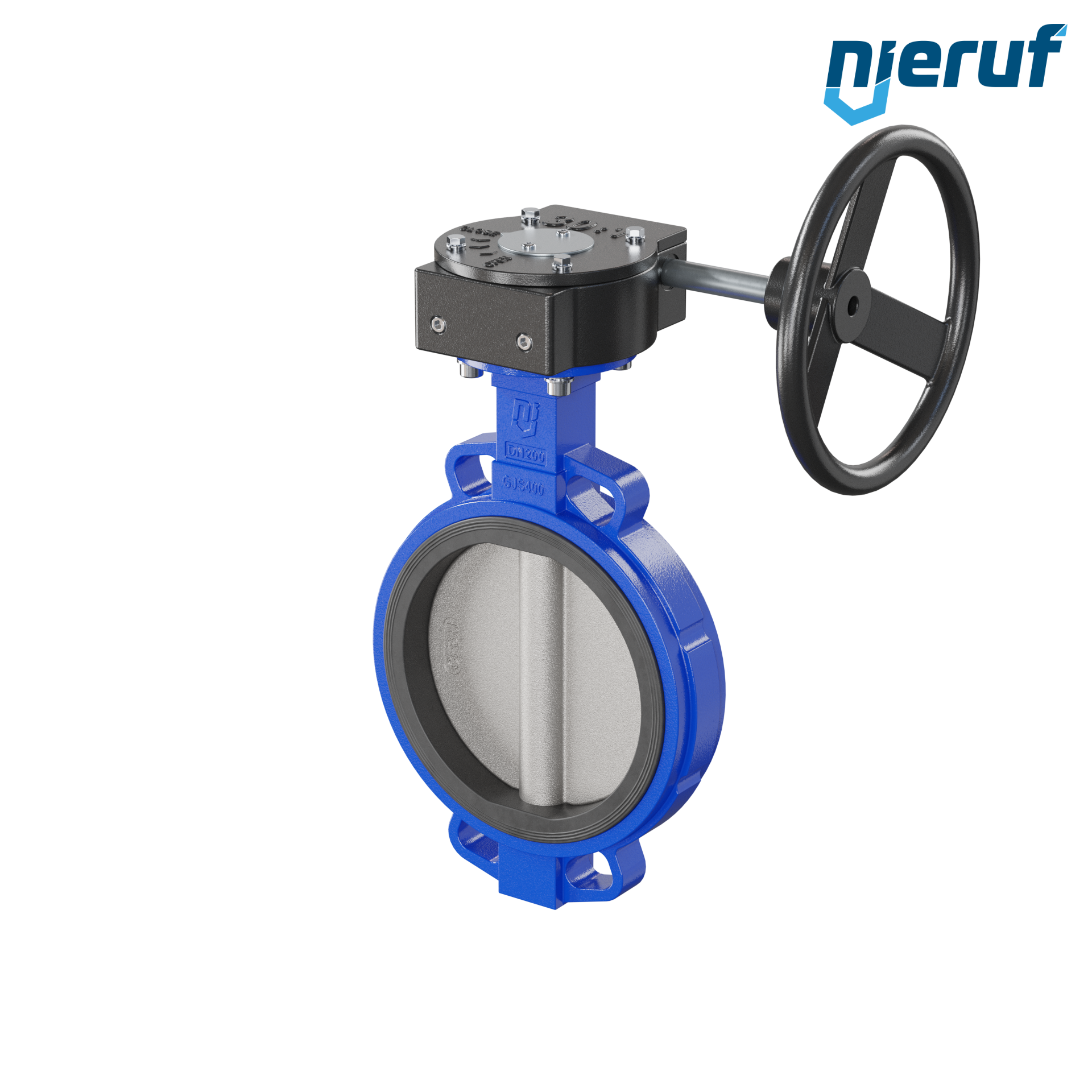 vanne papillon DN 200 PN16 type wafer corps en fonte EN GJL-250 (GG25) papillon en acier inoxydable 1.4408 avec engrenage NBR