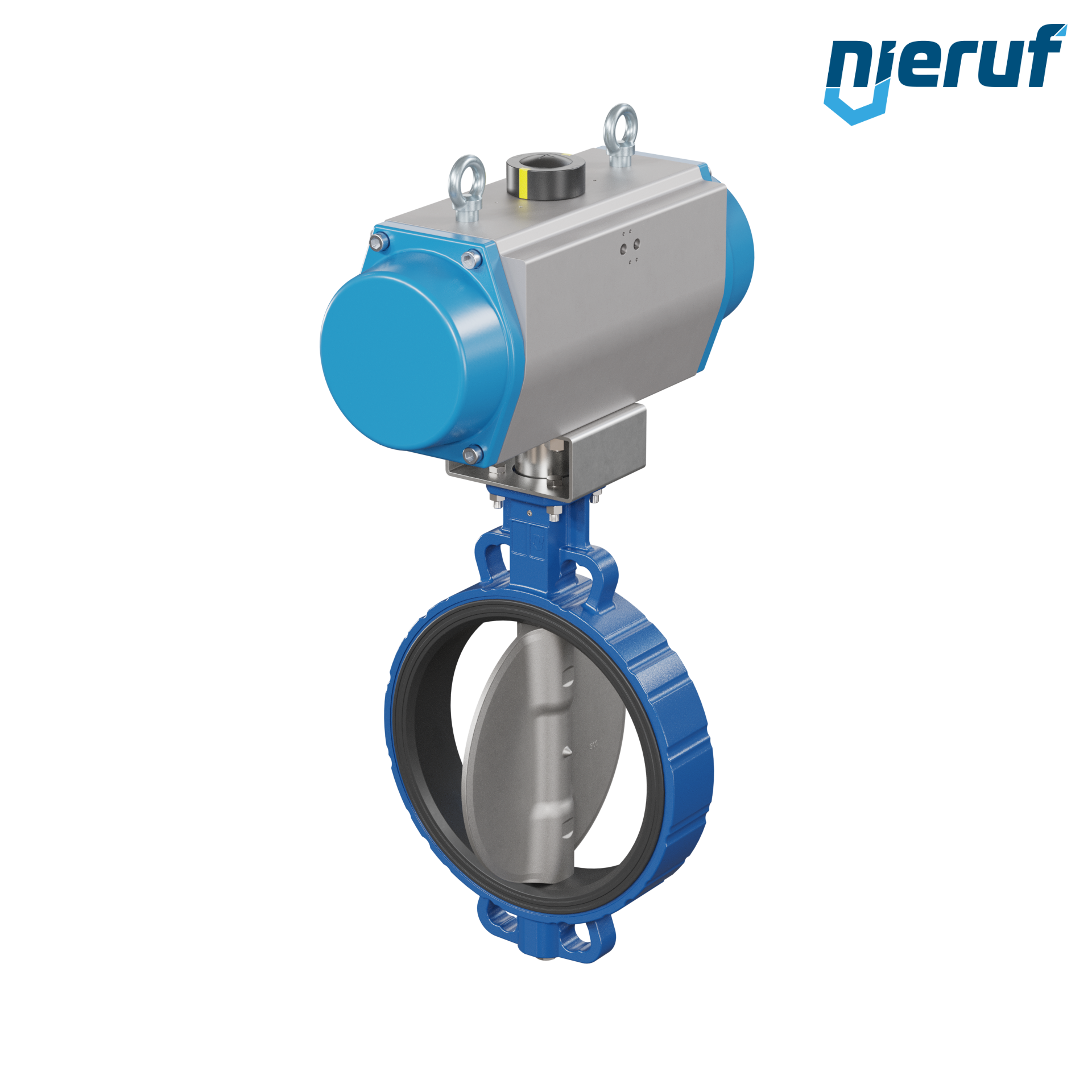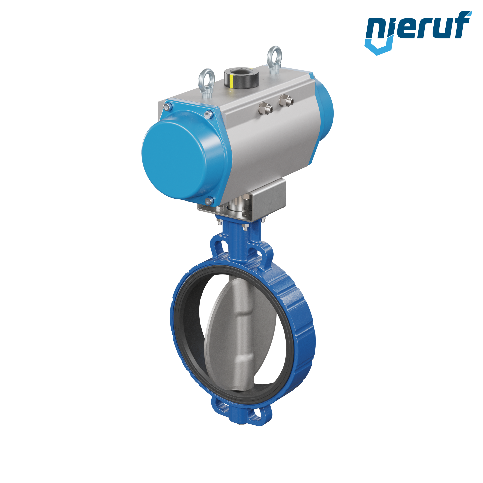 vanne papillon DN 300 avec oreilles centrées / wafer corps en fonte à graphite sphéroïdal avec actionneur pneumatique à simple effet ouverture par ressort manchette en FPM
