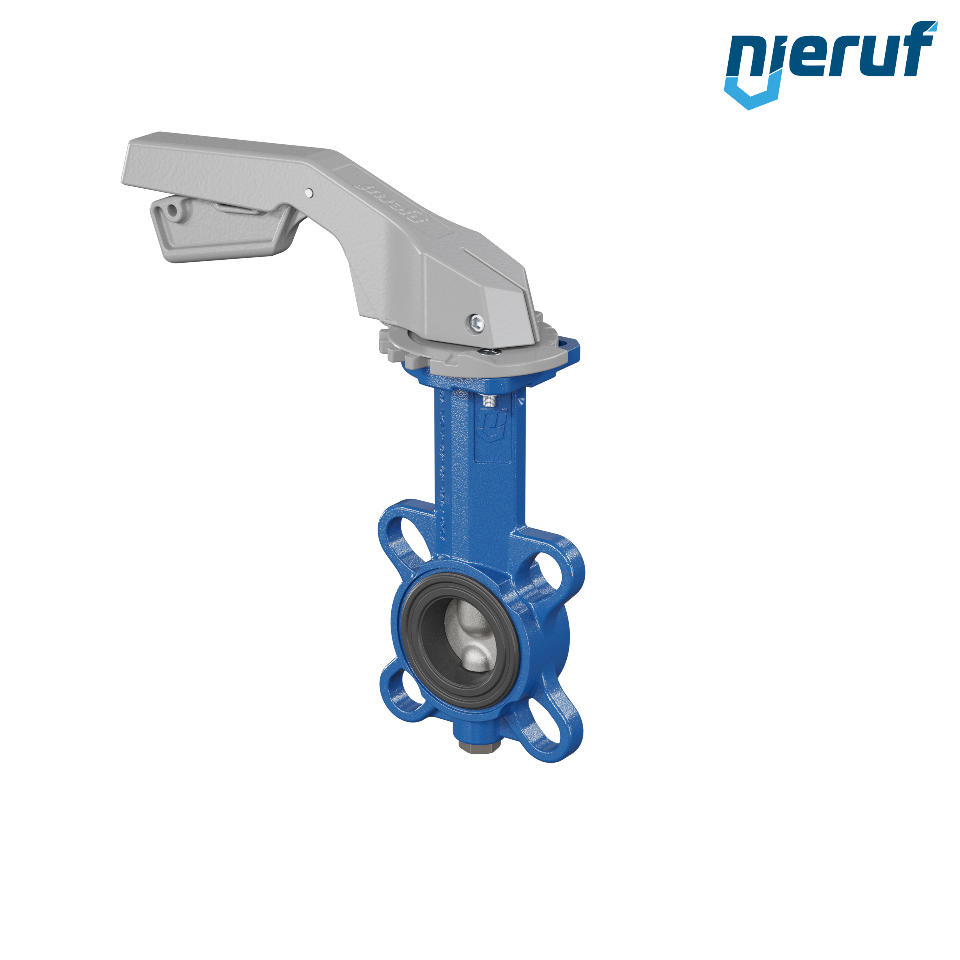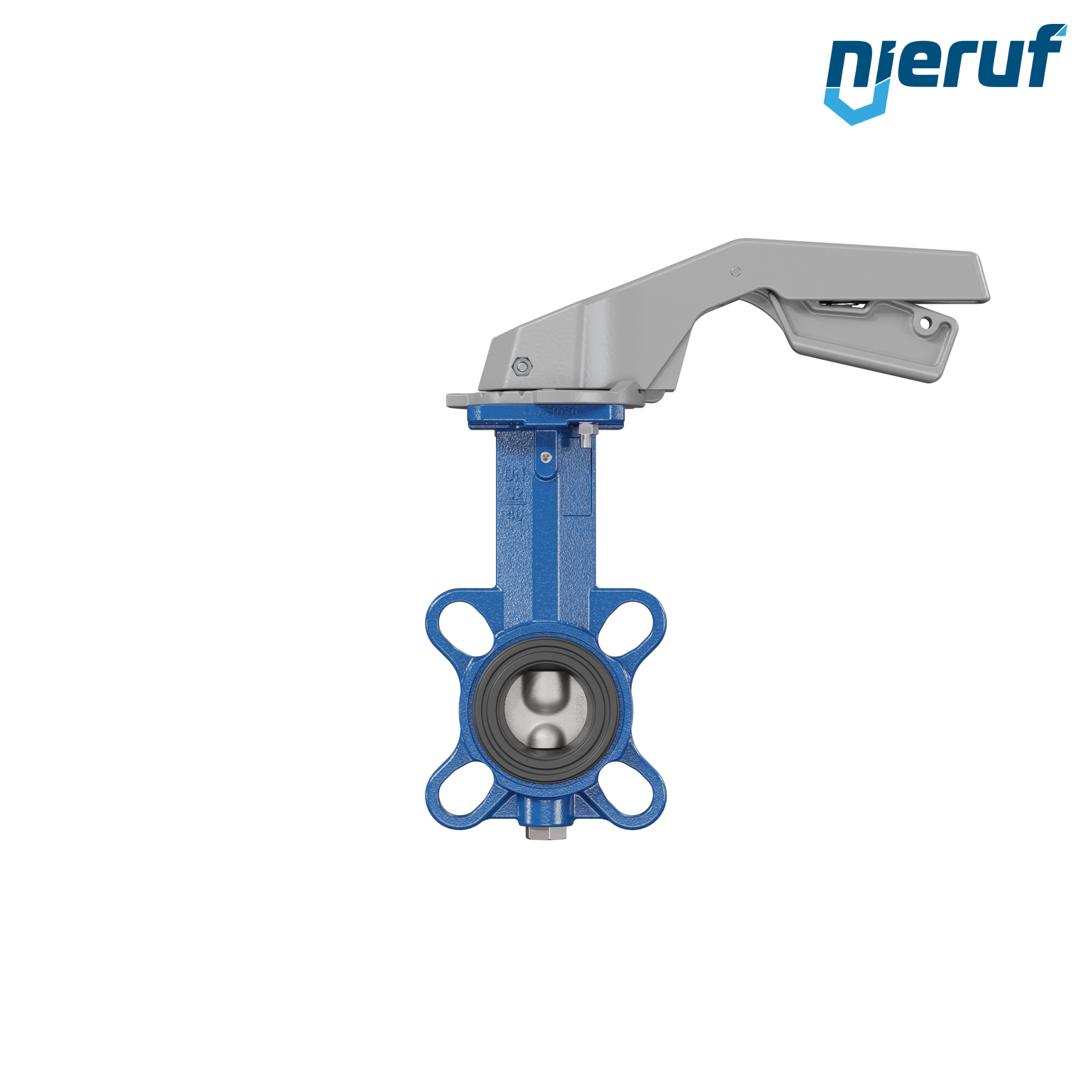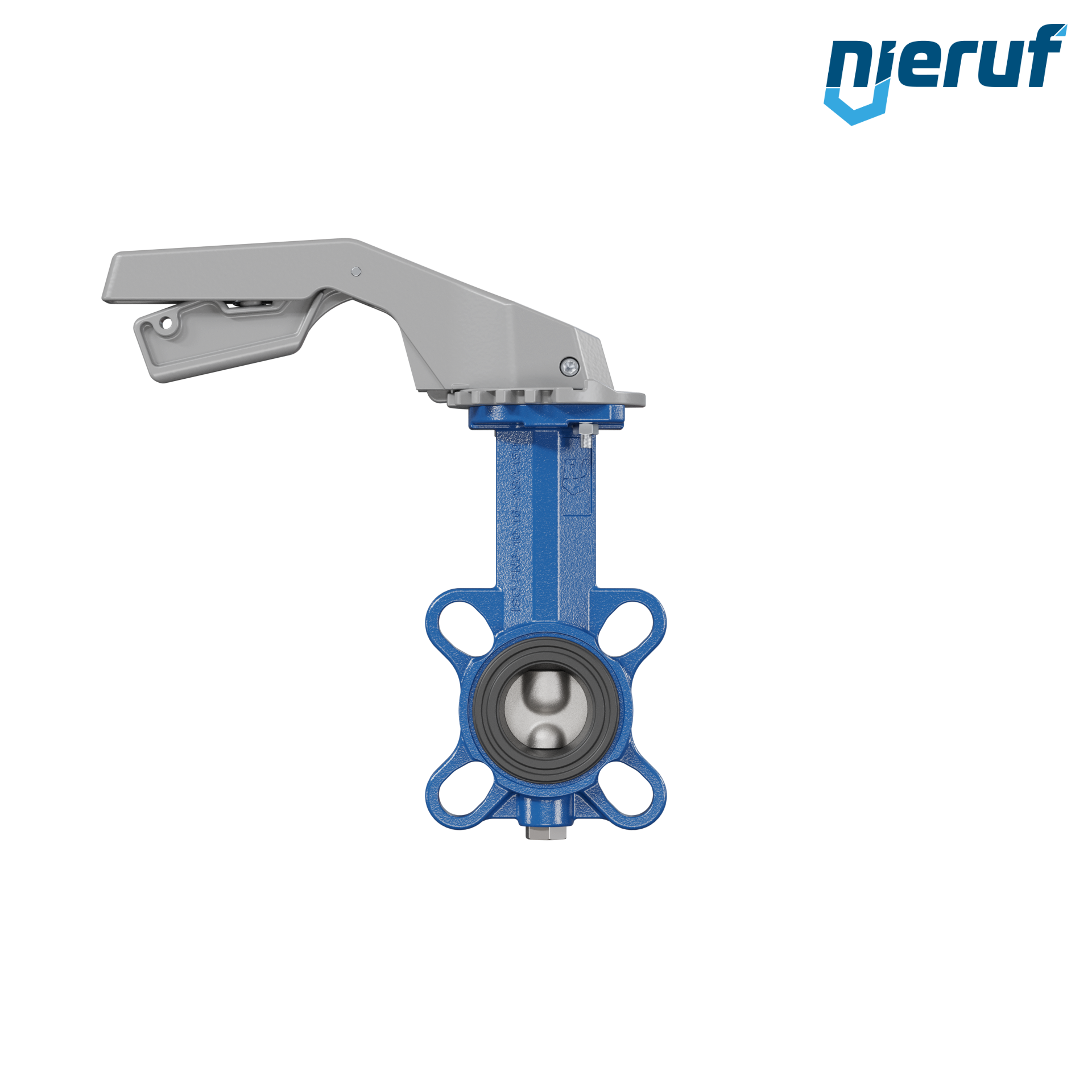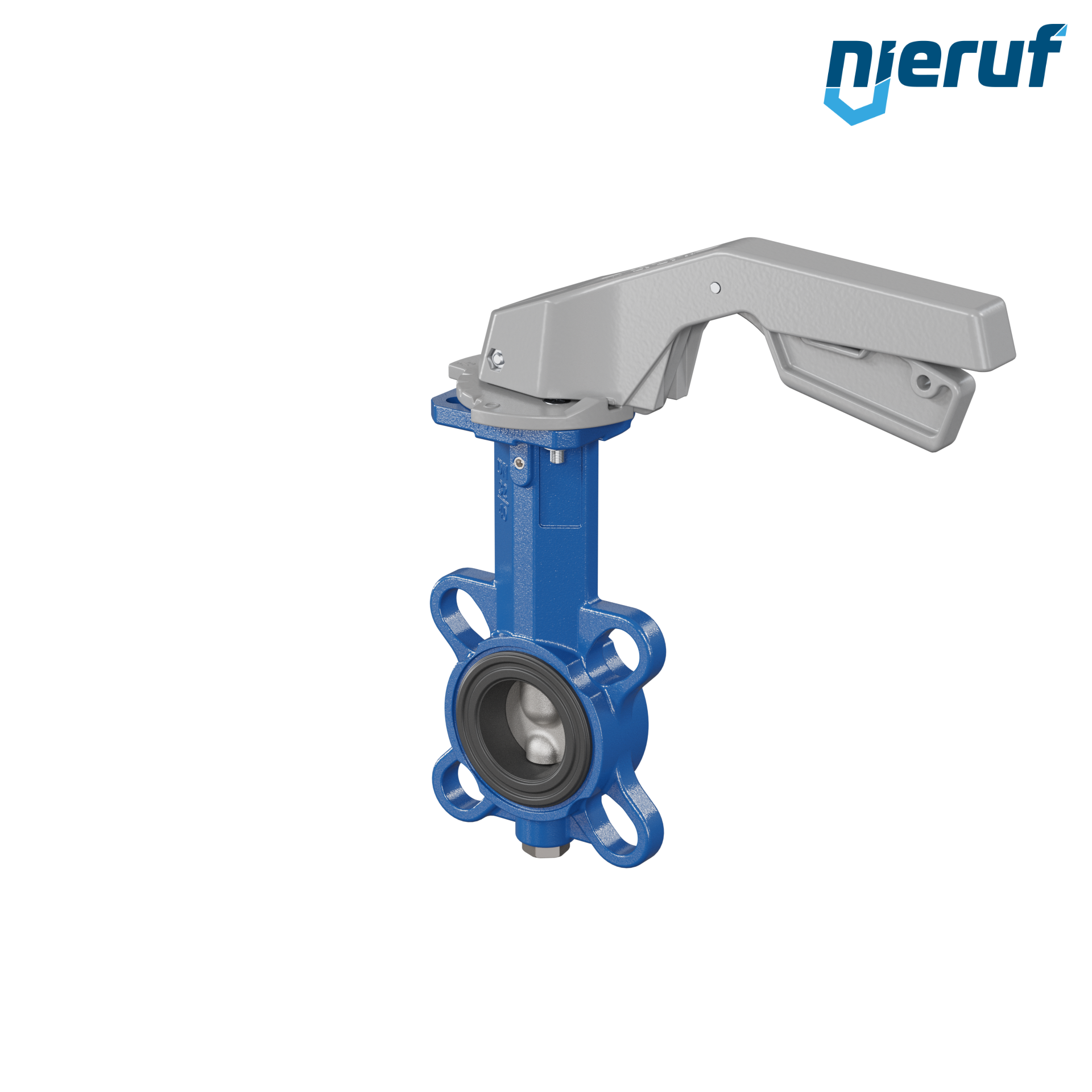 vanne papillon DN 32 PN6-PN10-PN16 & ANSI150 avec oreilles centrées / wafer corps en fonte à graphite sphéroïdal avec levier manuel grise manchette en FPM