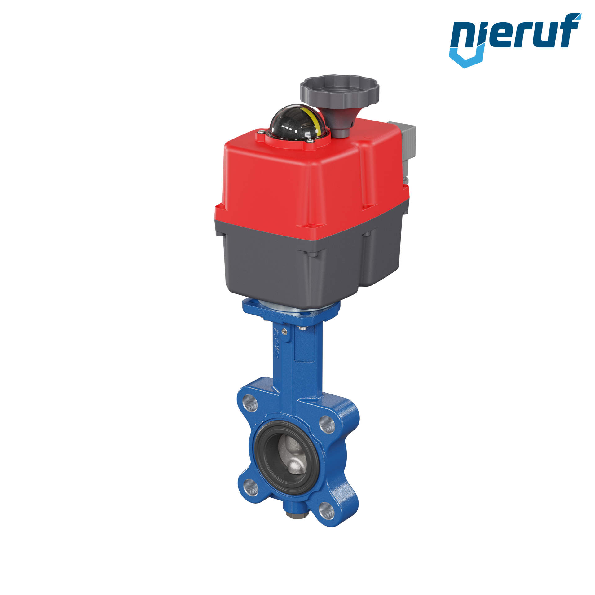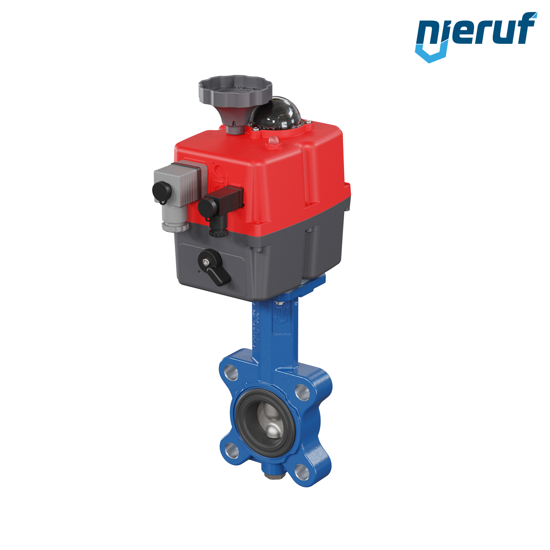 vanne papillon DN 32 PN10-PN16 avec oreilles taraudées / lug corps en fonte à graphite sphéroïdal avec actionneur électronique 24-240V AC/DC manchette en NBR-70-noir DVGW gaz