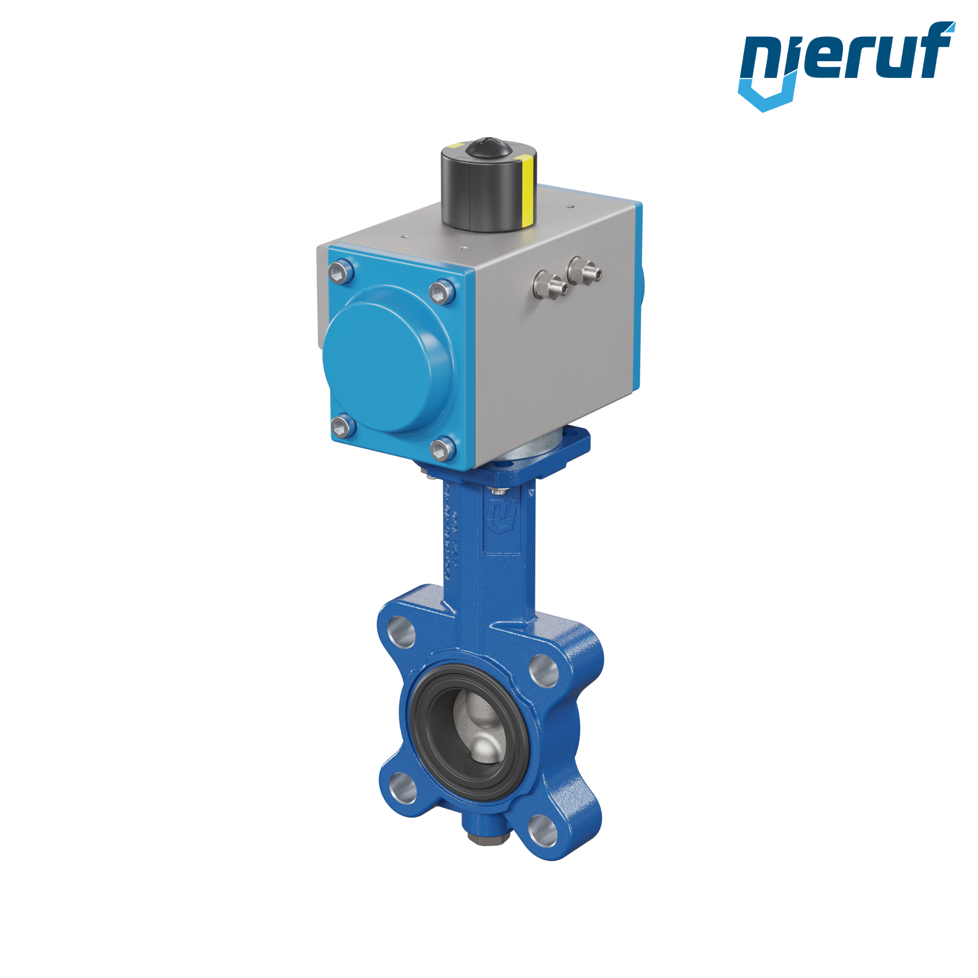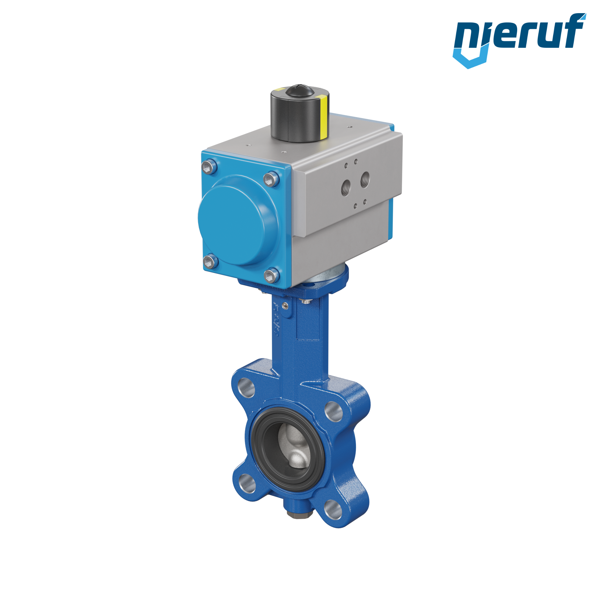 vanne papillon DN 32 avec oreilles taraudées / lug corps en fonte à graphite sphéroïdal avec actionneur pneumatique à double effet manchette en FPM