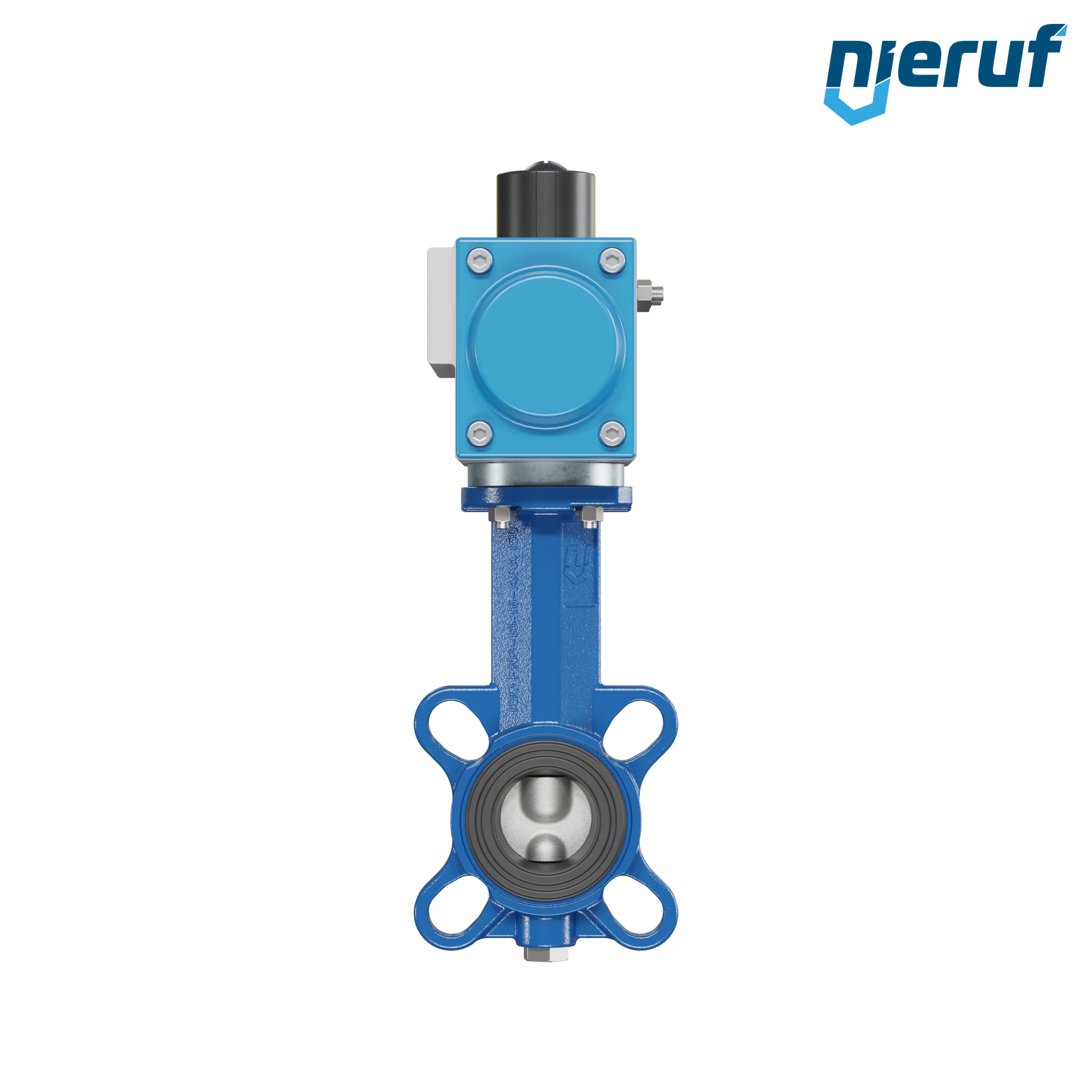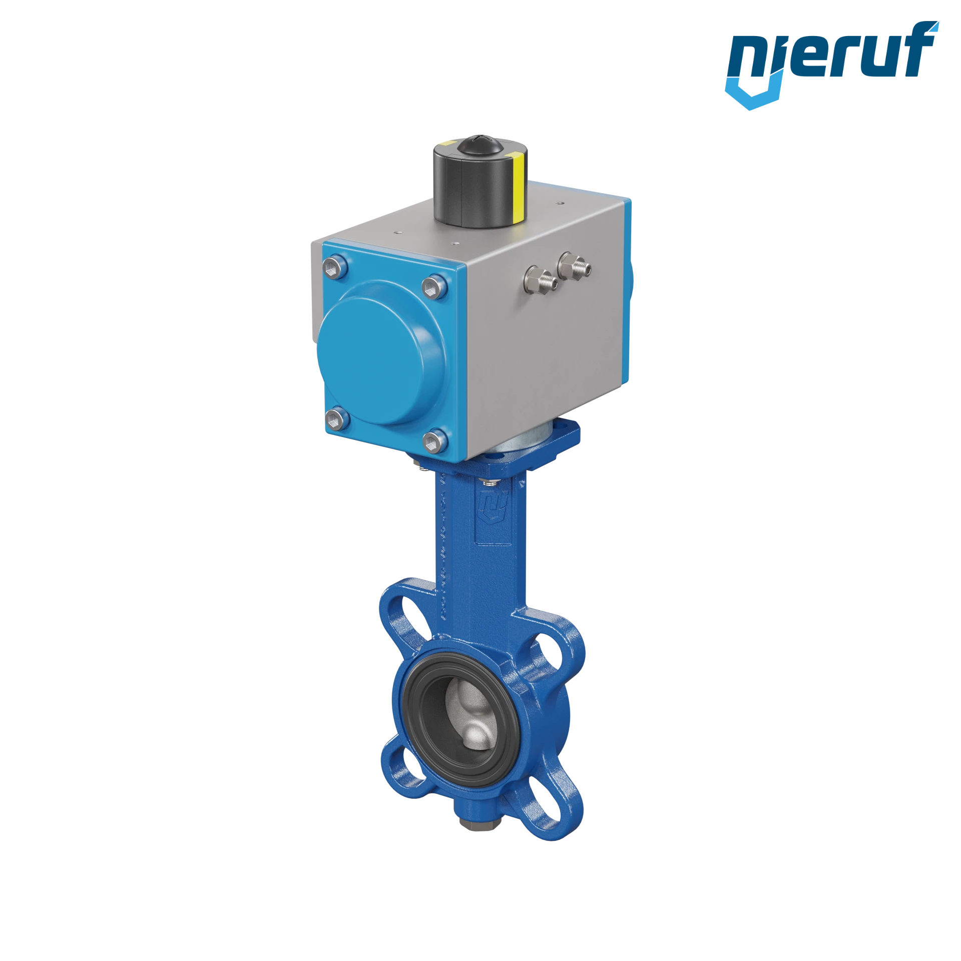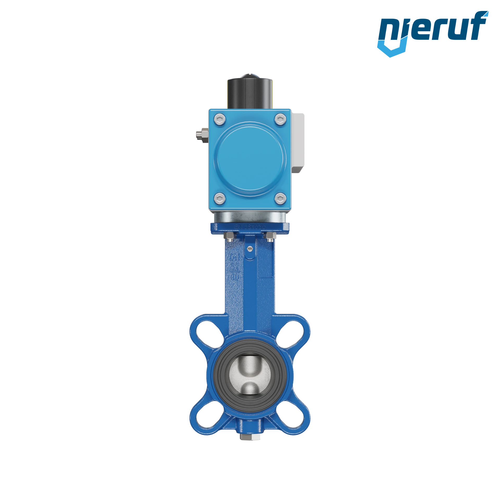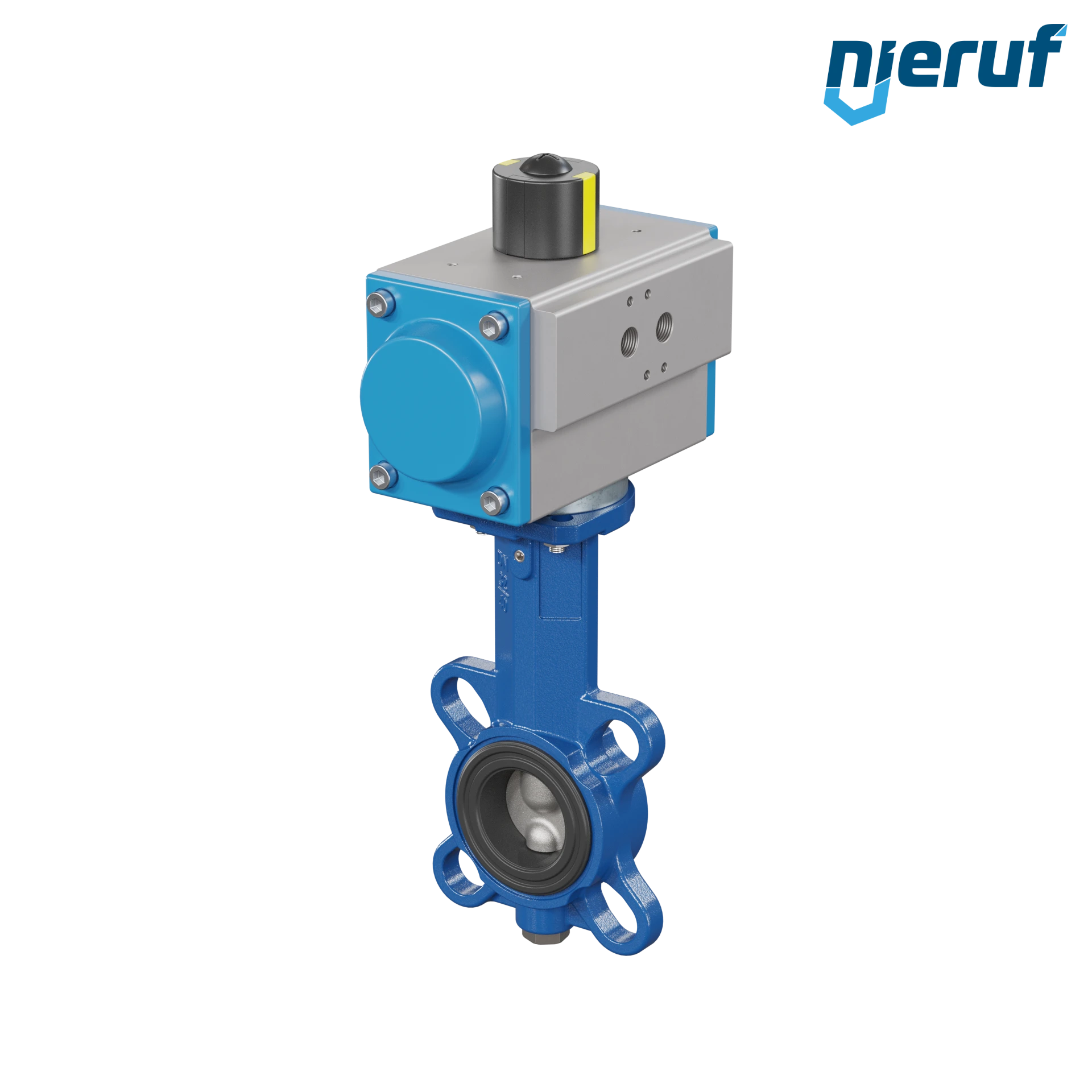 vanne papillon DN 32 avec oreilles centrées / wafer corps en fonte à graphite sphéroïdal avec actionneur pneumatique à simple effet fermeture par ressort manchette en FPM