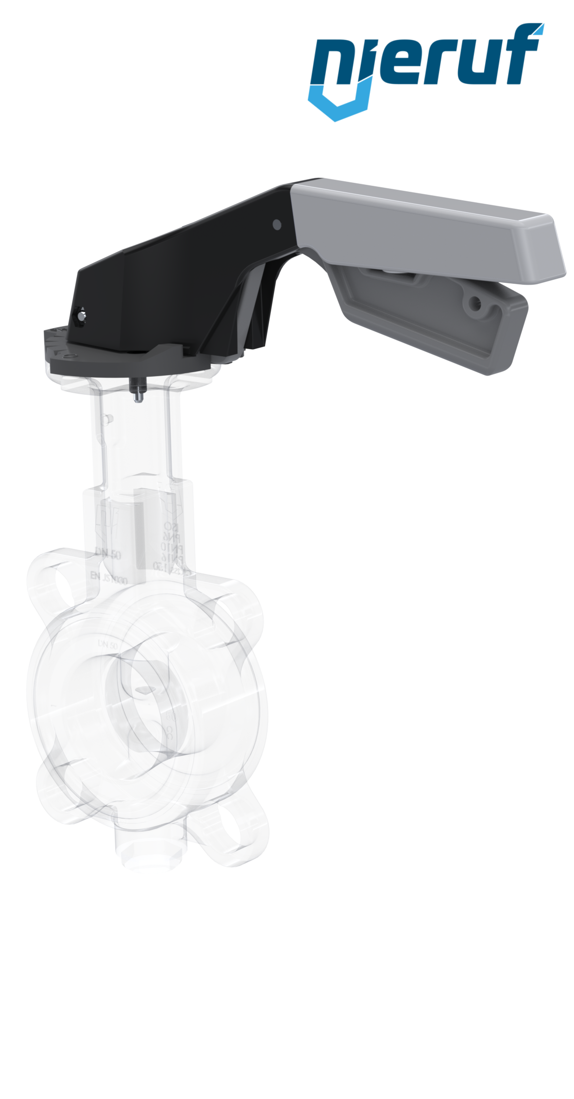 vanne papillon DN 40 PN6-PN10-PN16 & ANSI150 avec oreilles centrées / wafer corps en fonte à graphite sphéroïdal avec levier manuel grise manchette en FPM