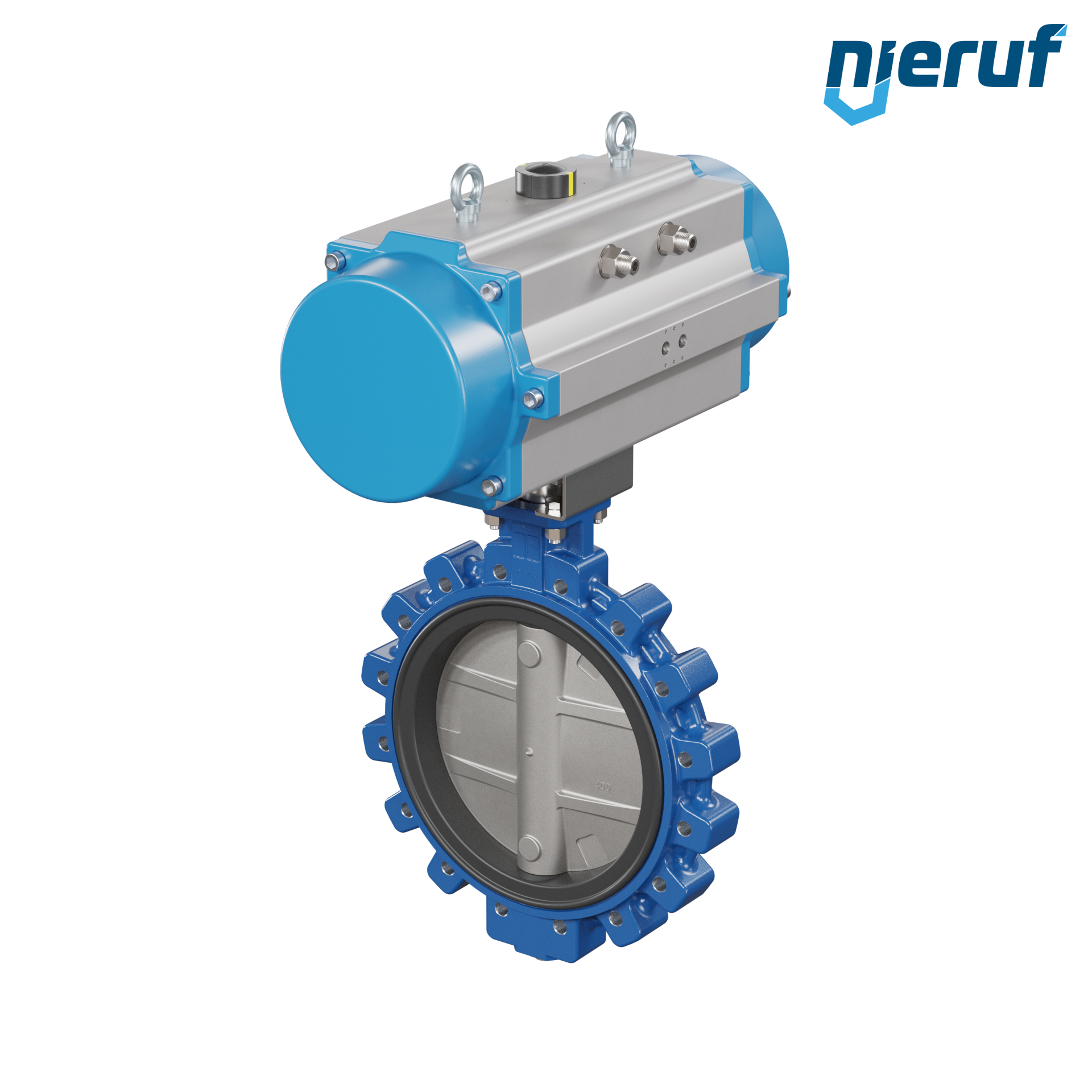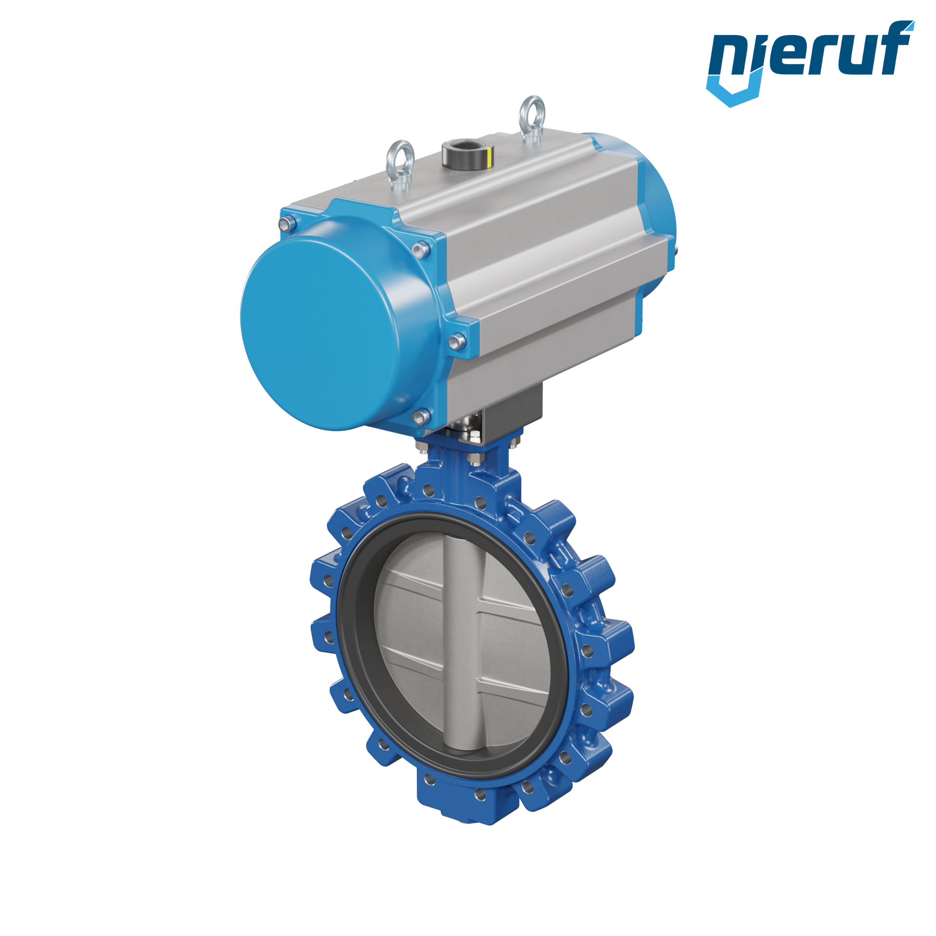 vanne papillon DN 400 avec oreilles taraudées / lug corps en fonte à graphite sphéroïdal avec actionneur pneumatique à simple effet fermeture par ressort manchette en EPDM DVGW eau potable, WRAS, ACS, W270