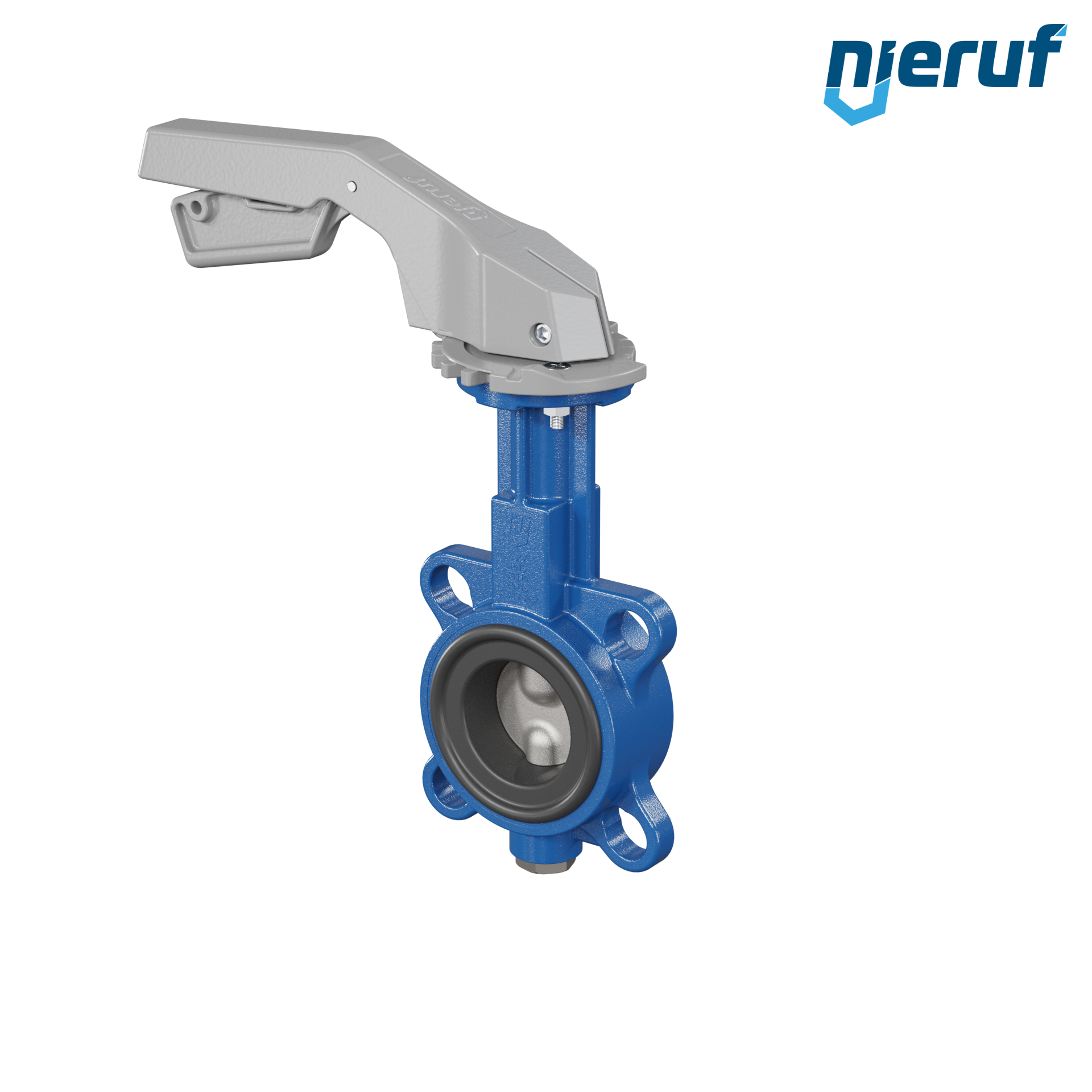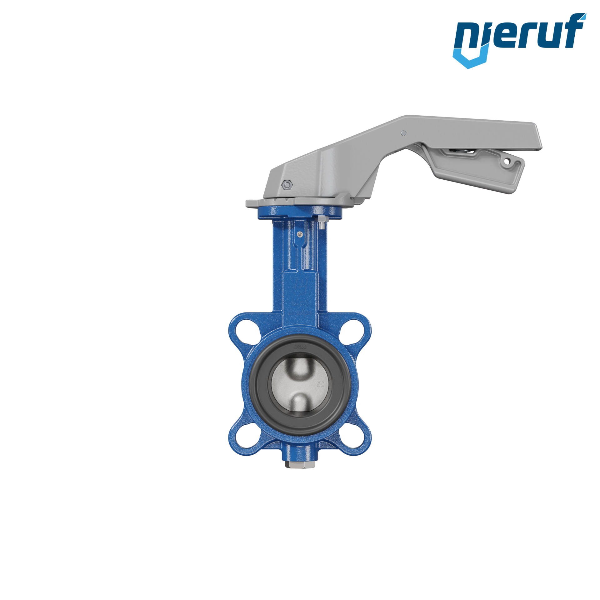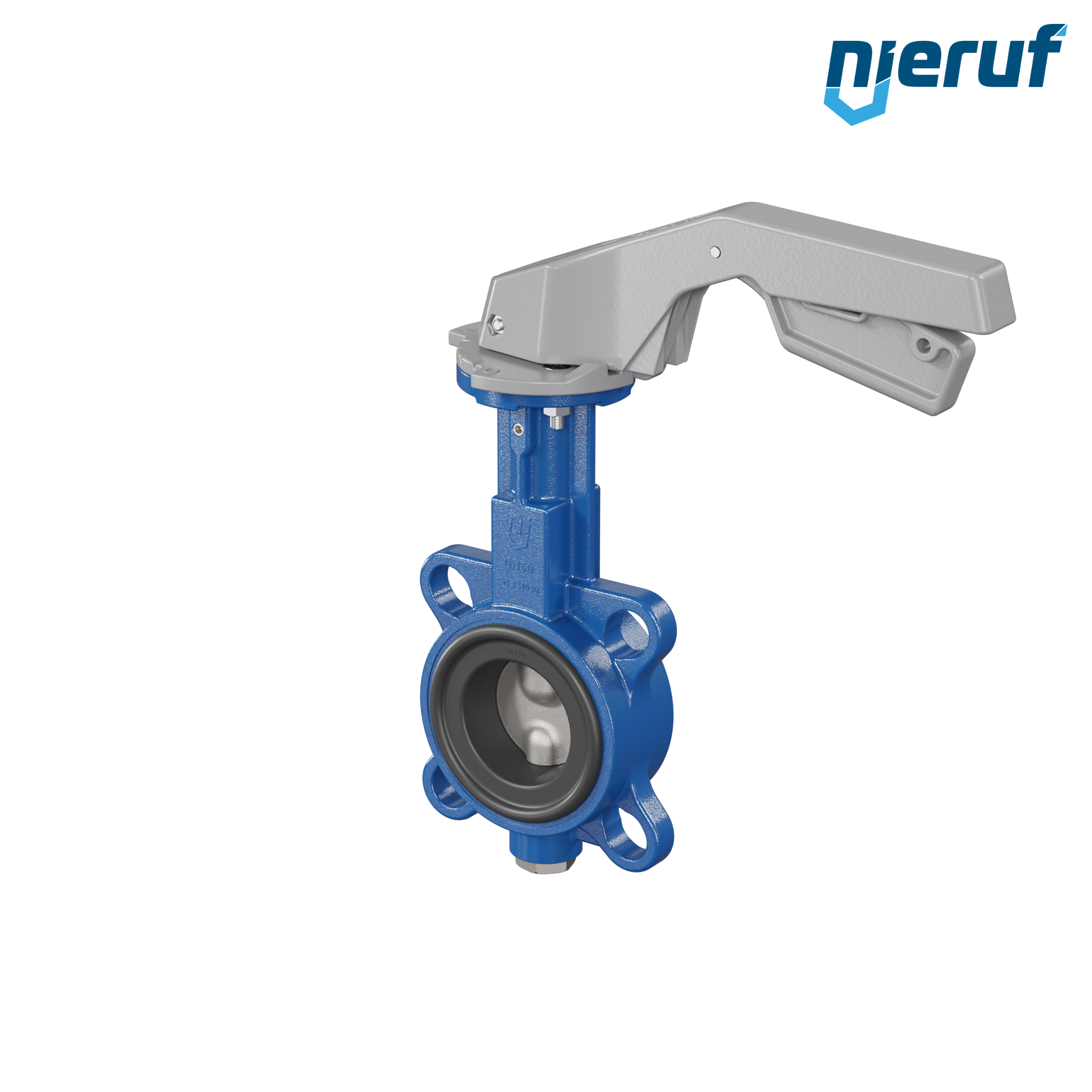 vanne papillon DN 50 PN6-PN10-PN16 & ANSI150 avec oreilles centrées / wafer corps en fonte à graphite sphéroïdal avec levier manuel grise manchette en FPM