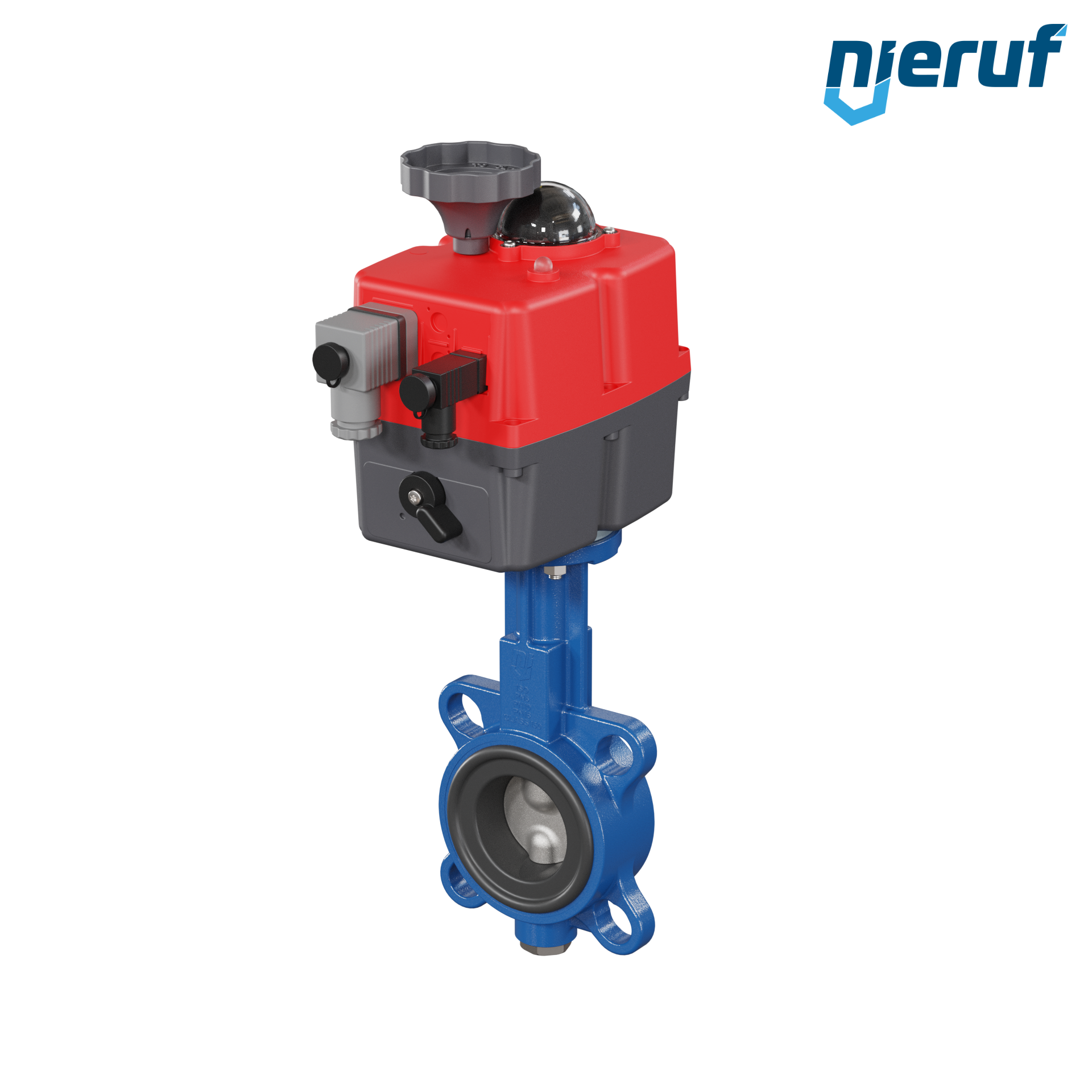 vanne papillon DN 50 PN6-PN10-PN16 & ANSI150 avec oreilles centrées / wafer corps en fonte à graphite sphéroïdal avec actionneur électronique 24-240V AC/DC manchette en FPM