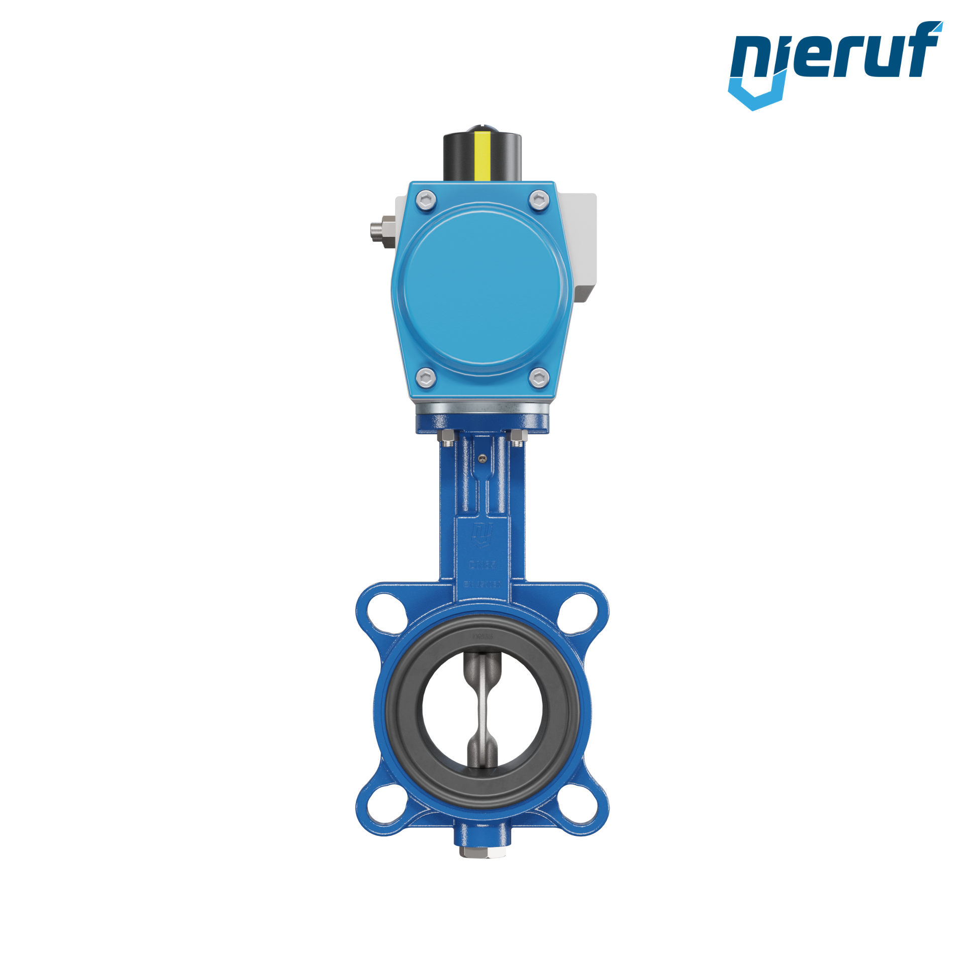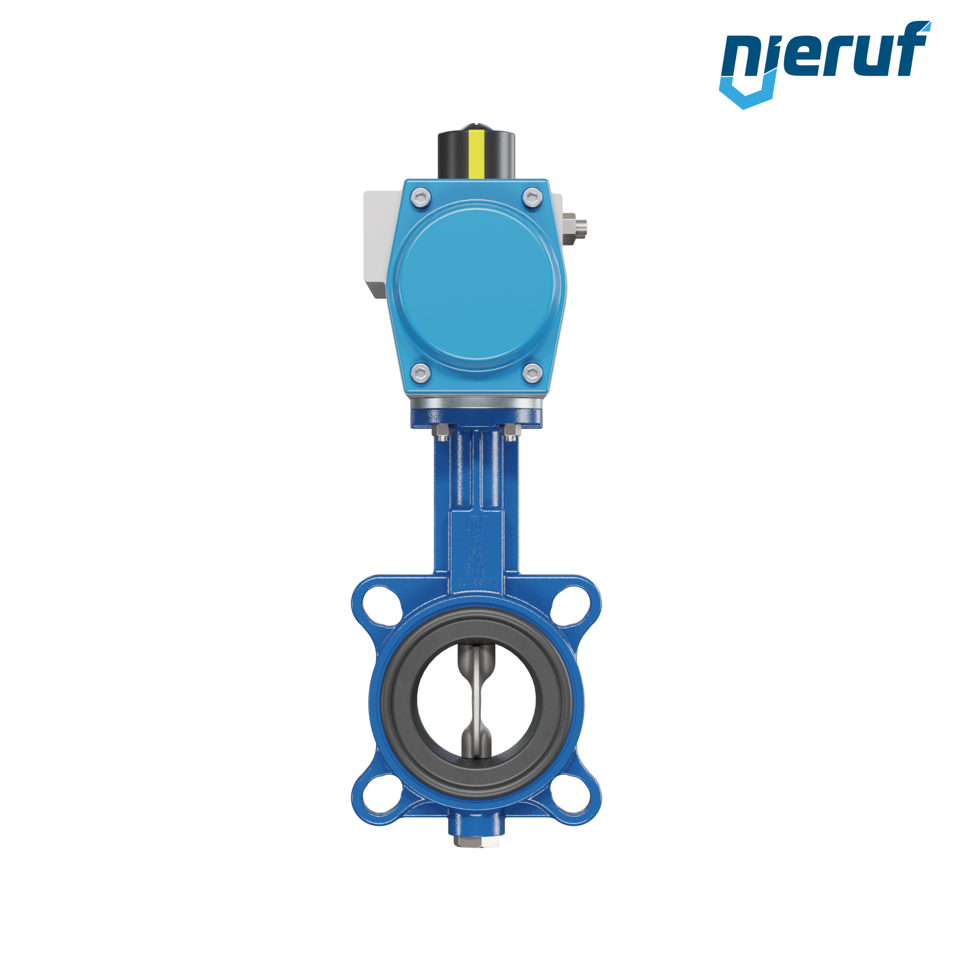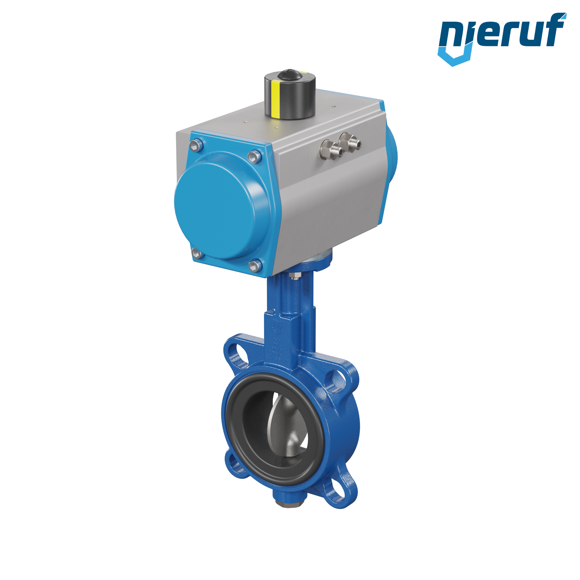 vanne papillon DN 65 avec oreilles centrées / wafer corps en fonte à graphite sphéroïdal avec actionneur pneumatique à simple effet ouverture par ressort manchette en EPDM DVGW eau potable, WRAS, ACS, W270