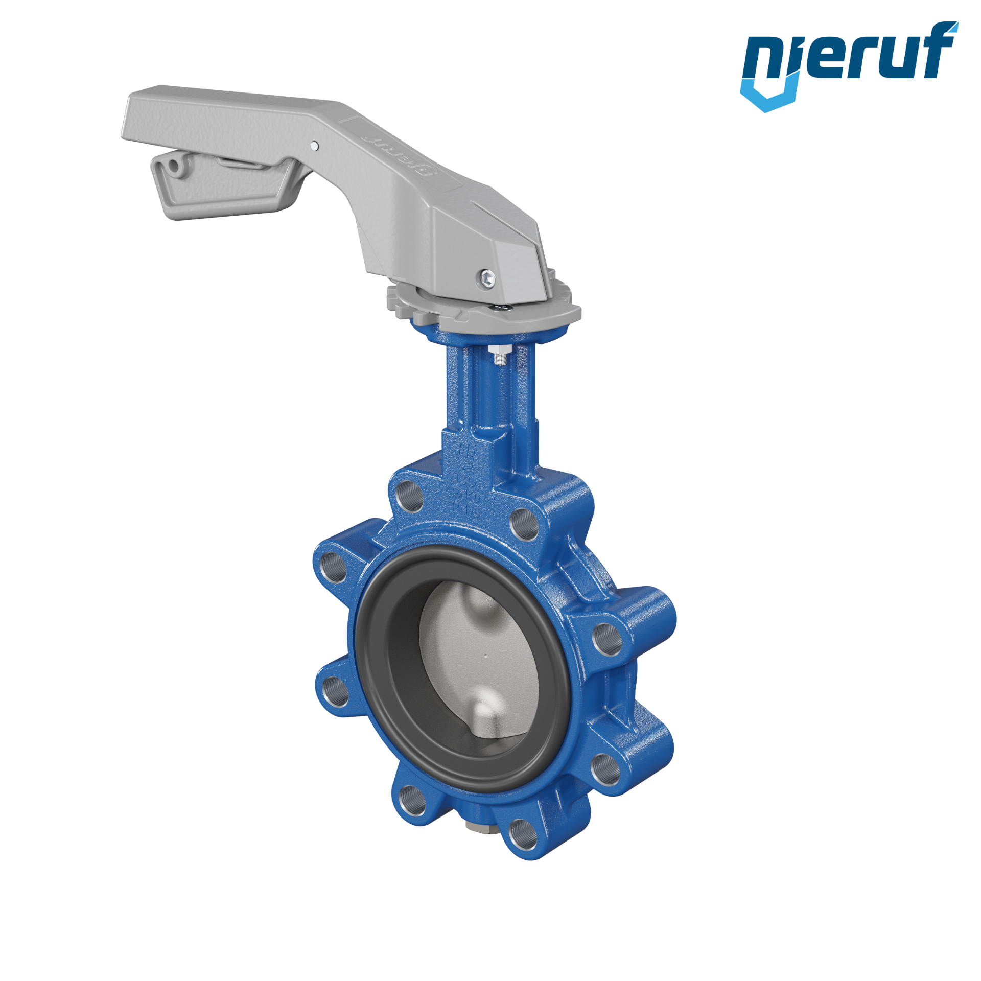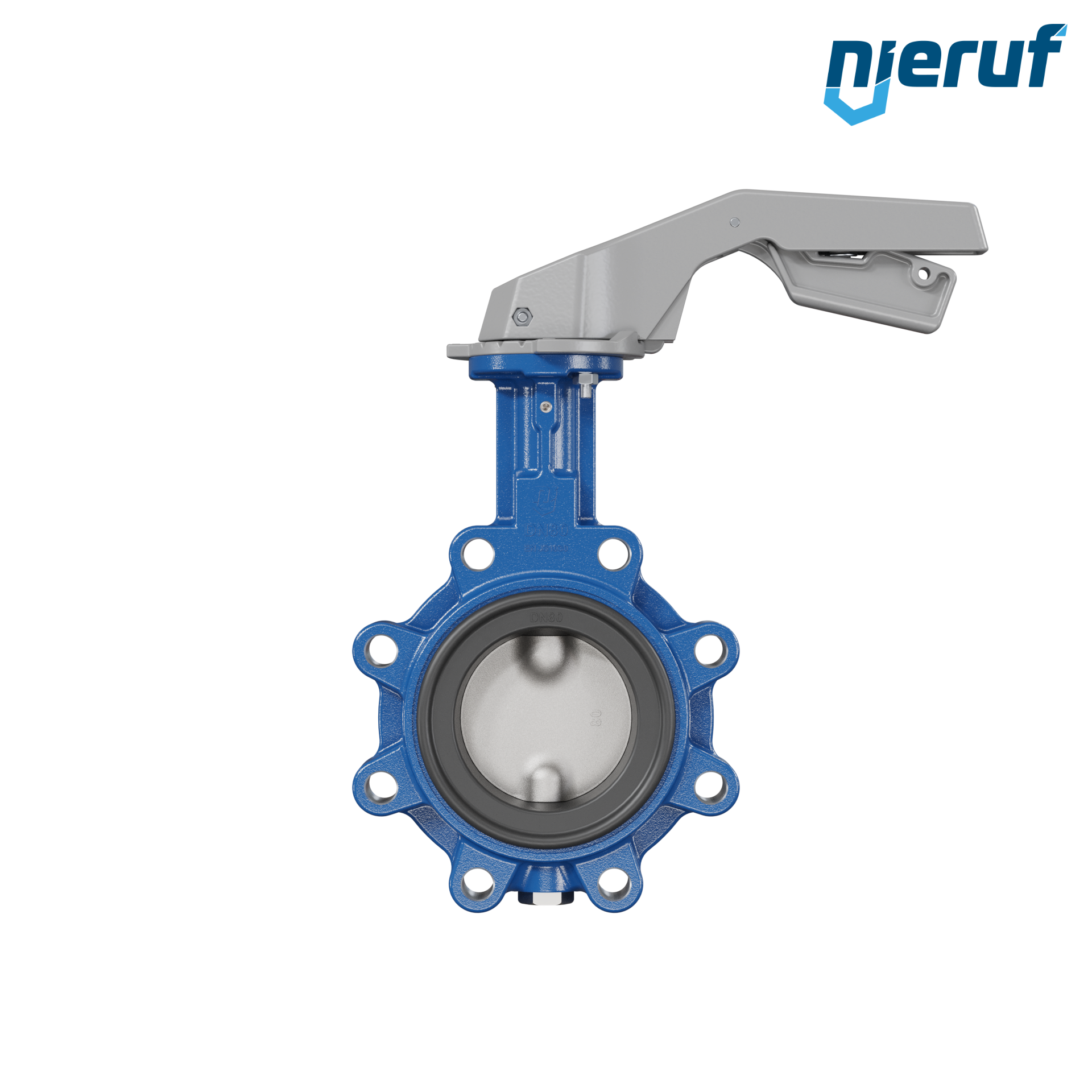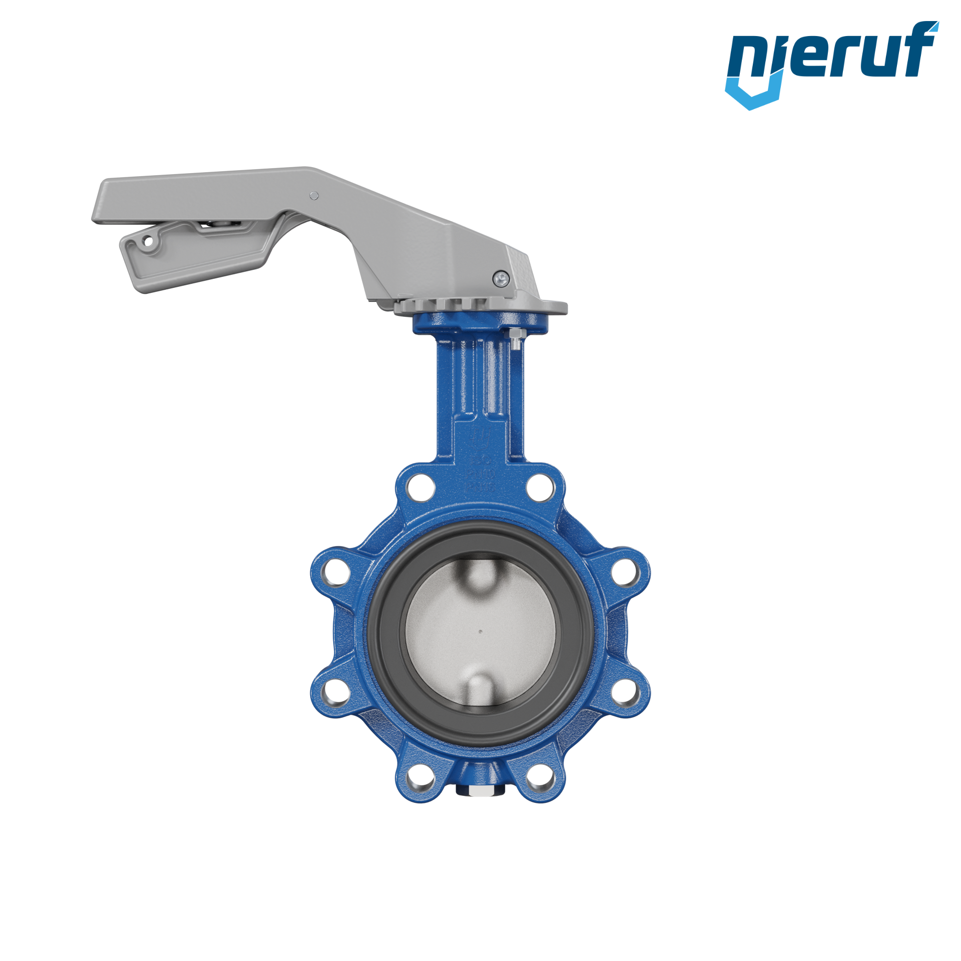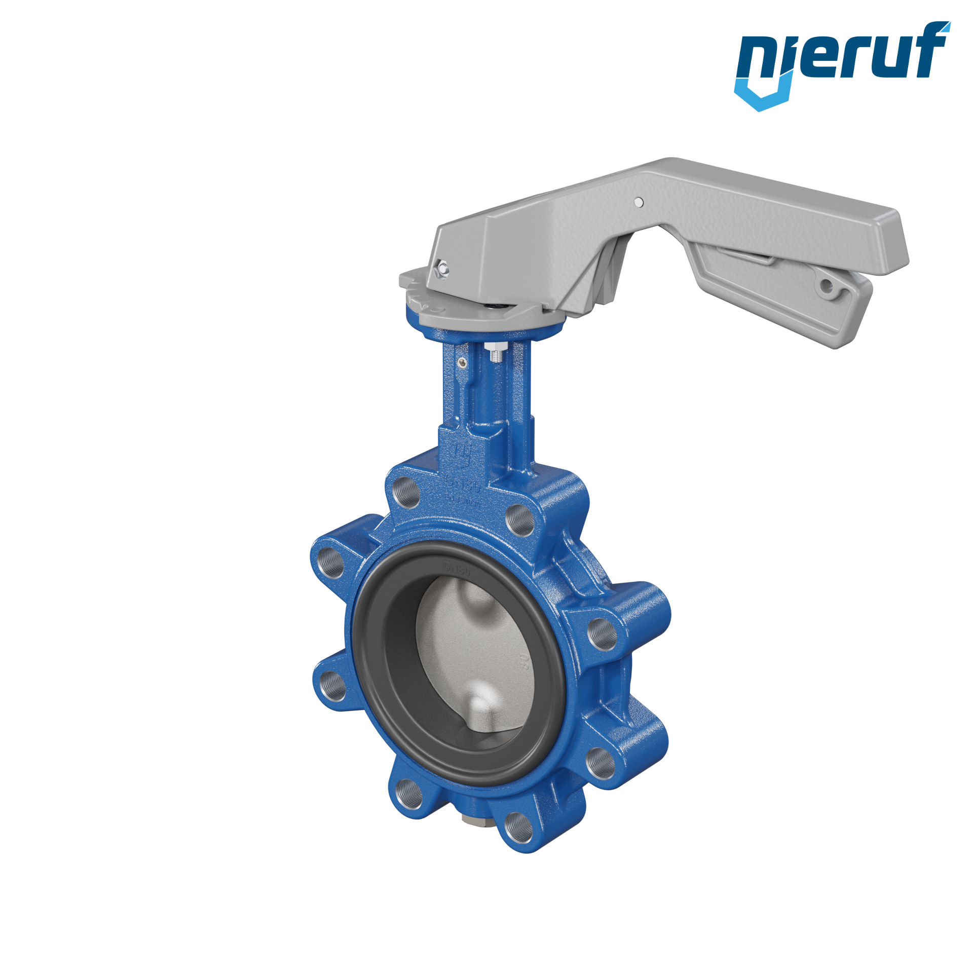 vanne papillon DN 80 PN10-PN16 avec oreilles taraudées / lug fonte à graphite sphéroïdal avec levier manuel grise EPDM DVGW eau potable, WRAS, ACS, W270