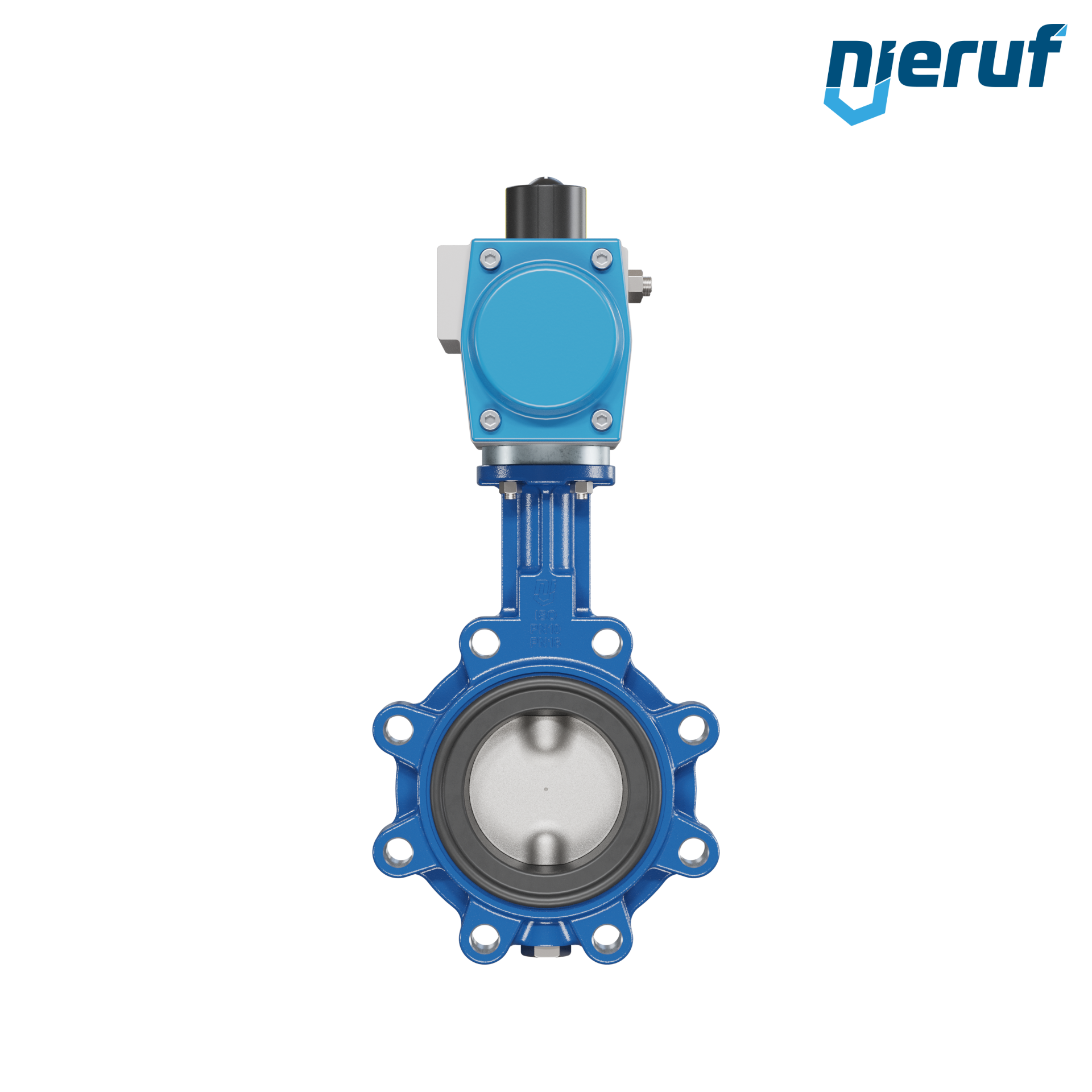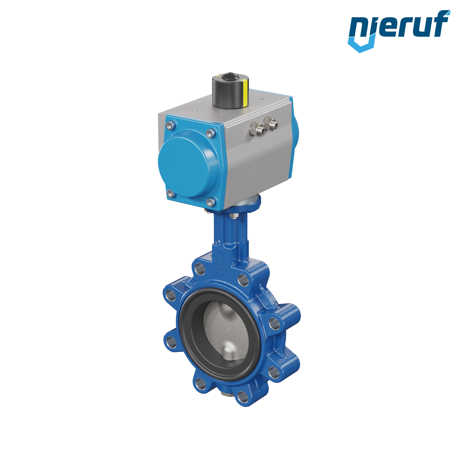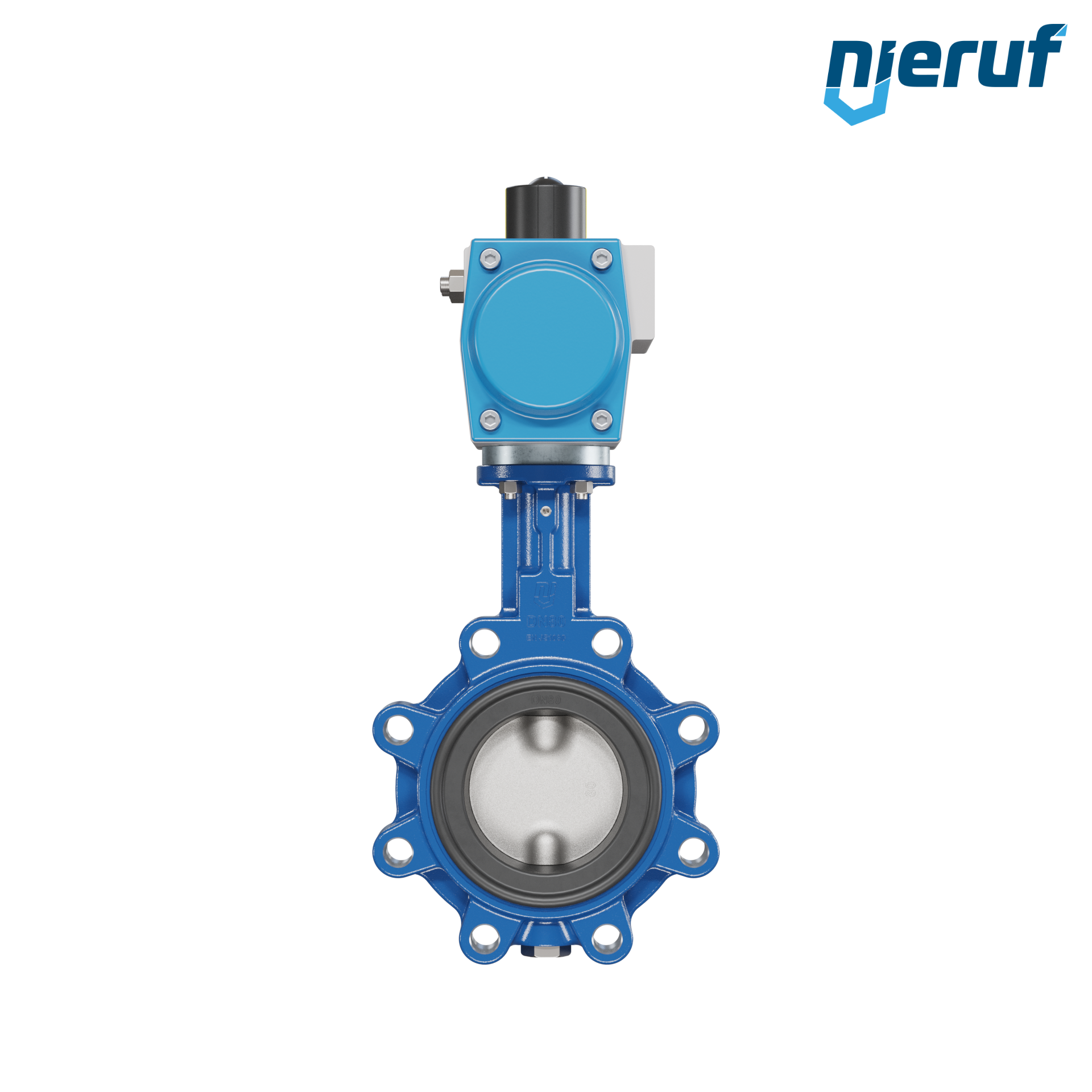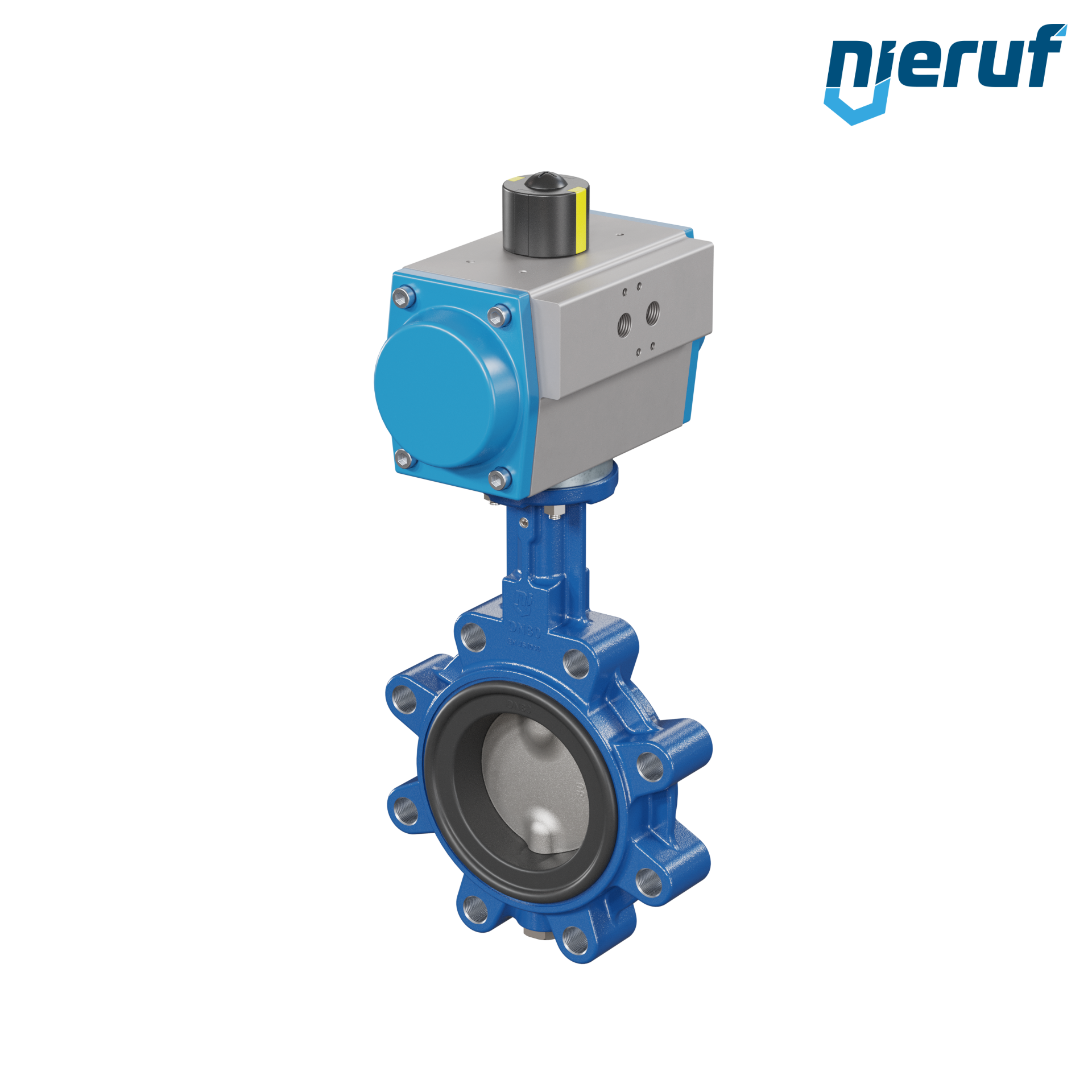 vanne papillon DN 80 avec oreilles taraudées / lug corps en fonte à graphite sphéroïdal avec actionneur pneumatique à double effet manchette en FPM