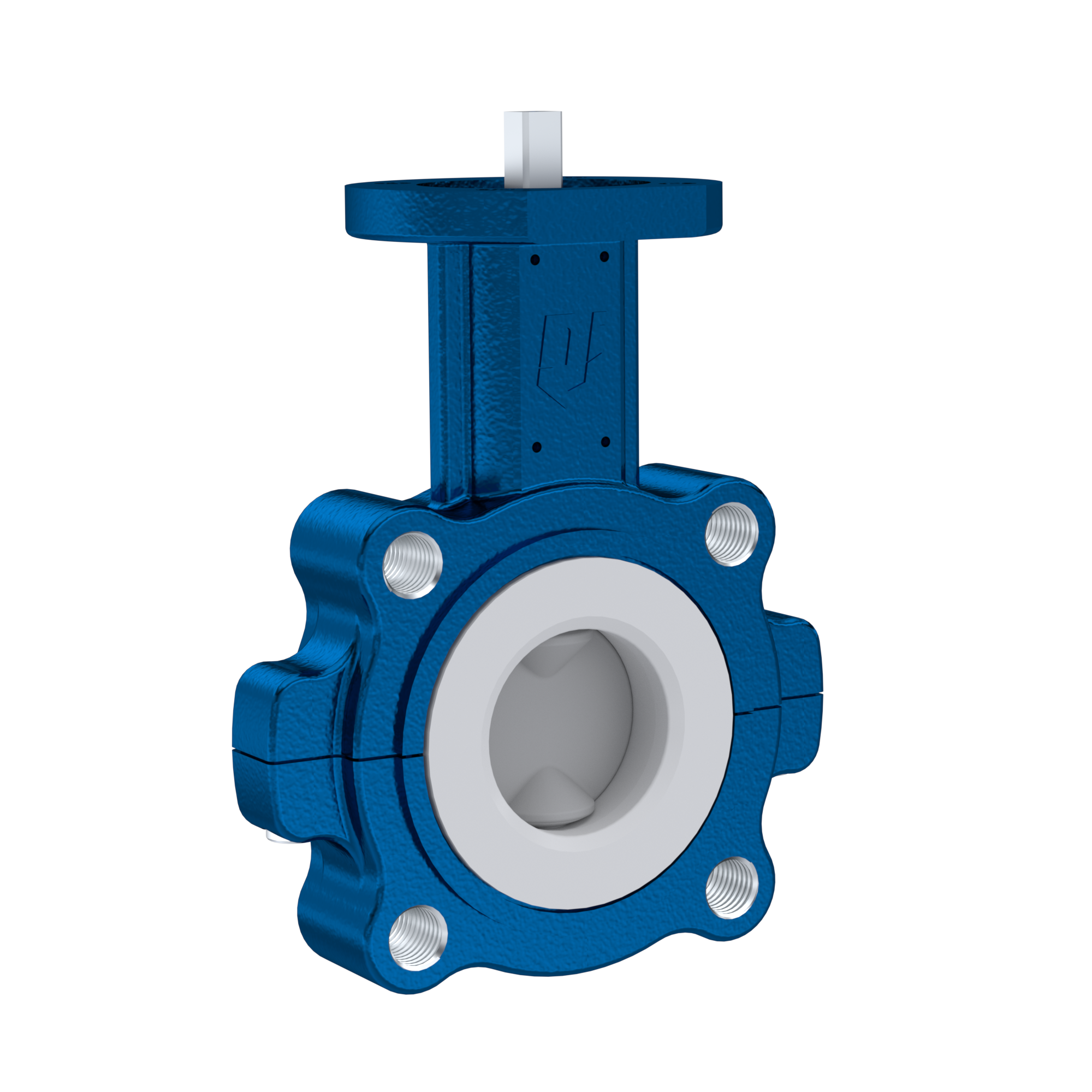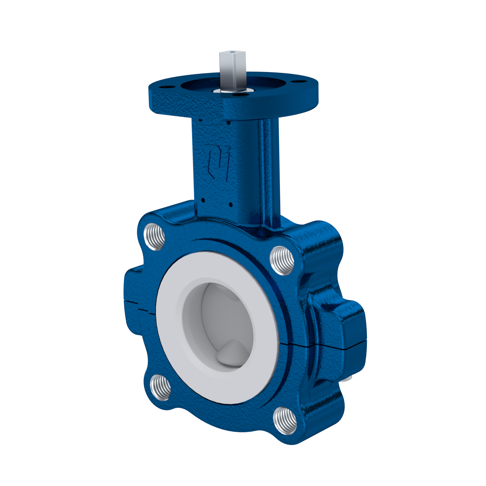 Vanne papillon en PFA avec papillon en PTFE pour les fluides agressifs.