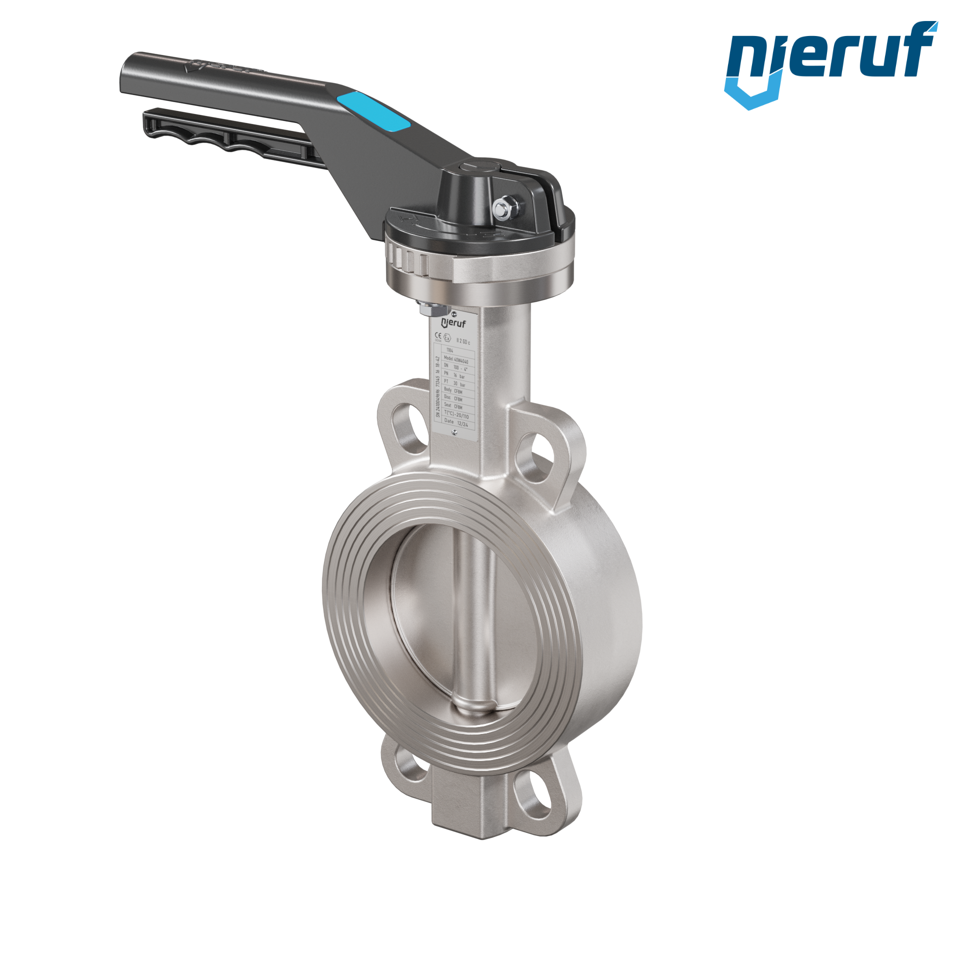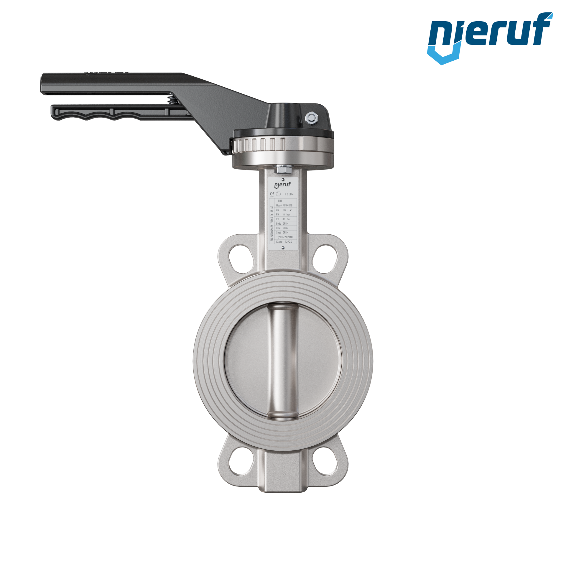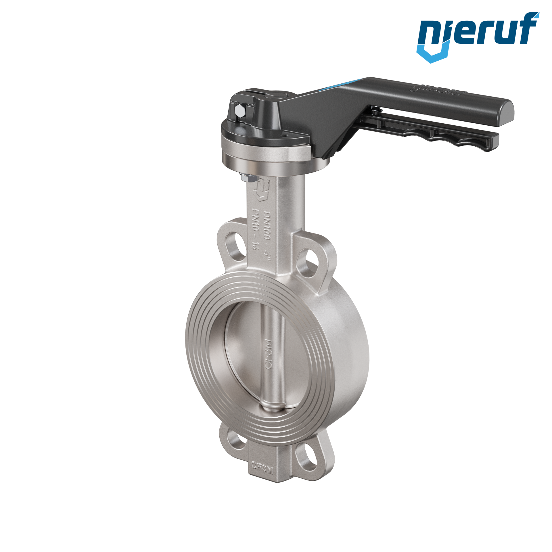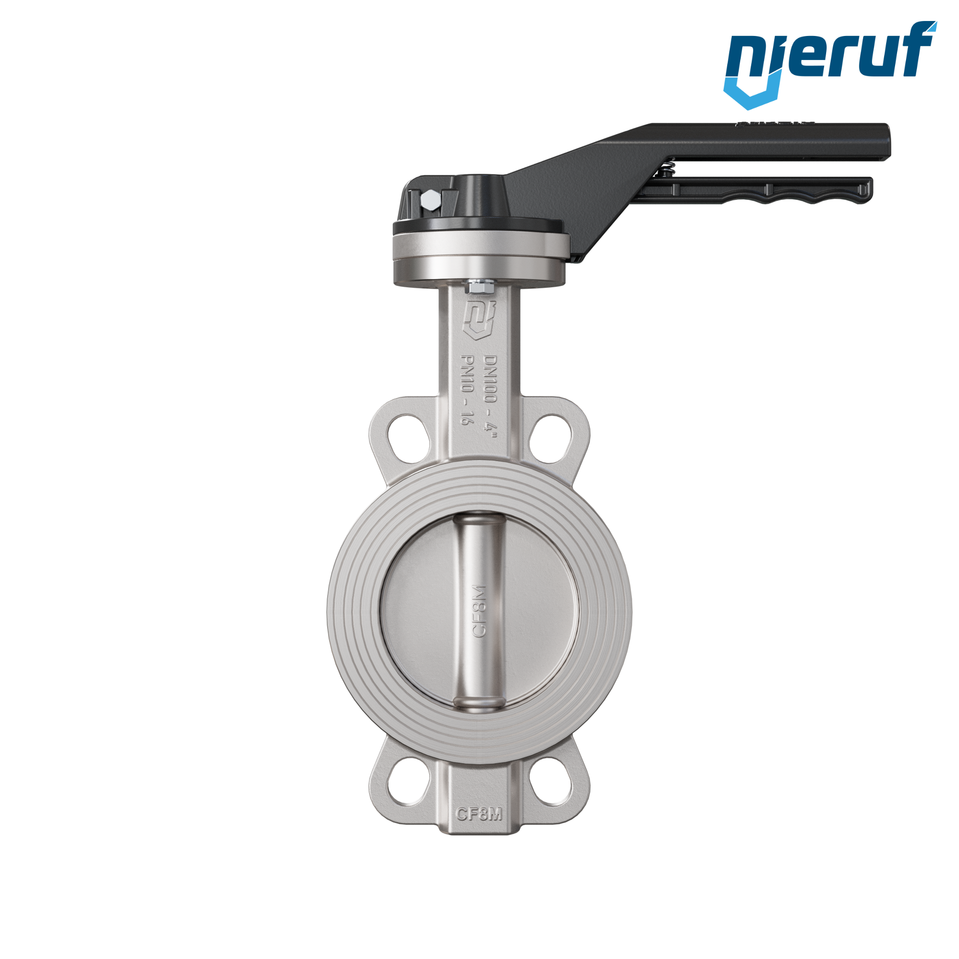 vanne papillon en acier inoxydable DN 100 PN16 avec oreilles centrées / wafer corps en acier inoxydable 1.4408 papillon en acier inoxydable 1.4408 avec levier manuel et joint en métal