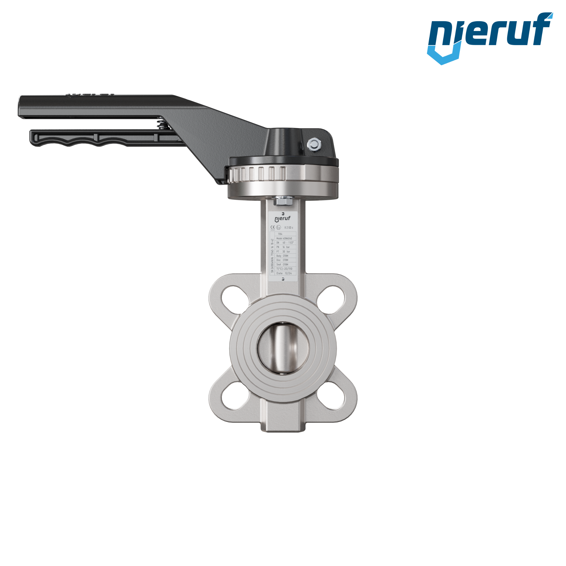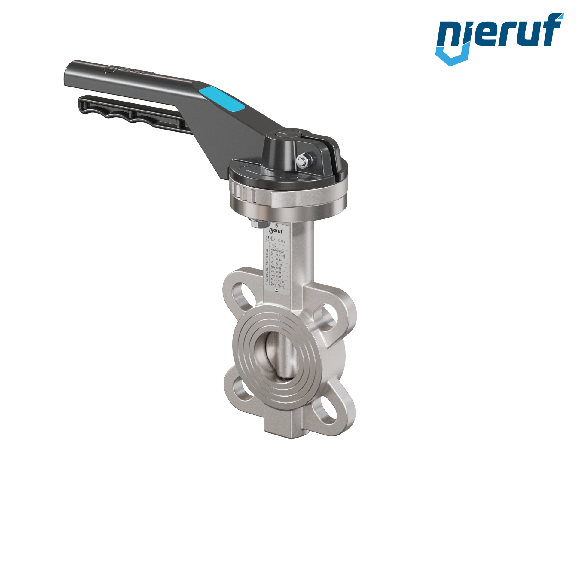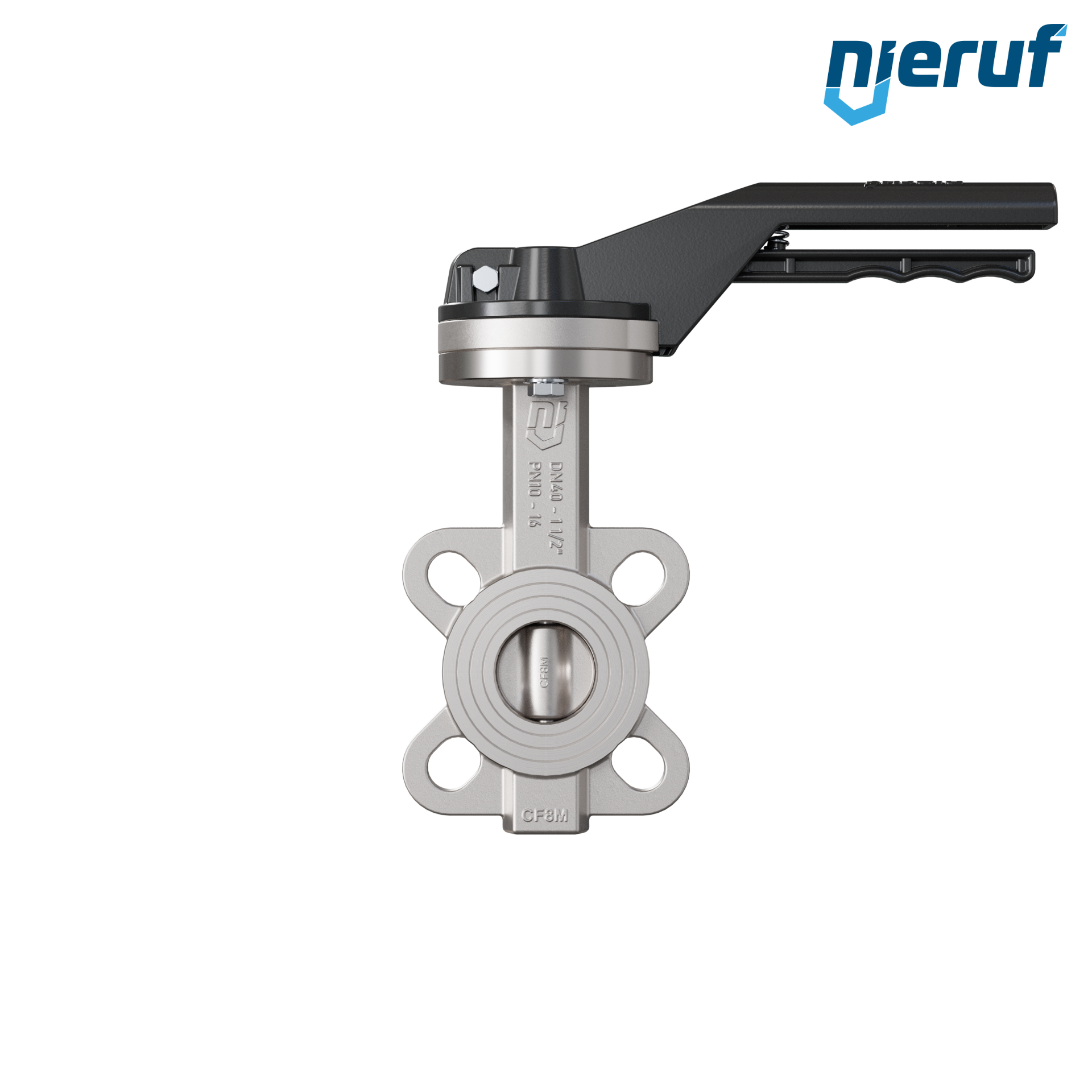 vanne papillon en acier inoxydable DN40 PN16 avec oreilles centrées / wafer corps en acier inoxydable 1.4408 papillon en acier inoxydable 1.4408 avec levier manuel et joint en métal